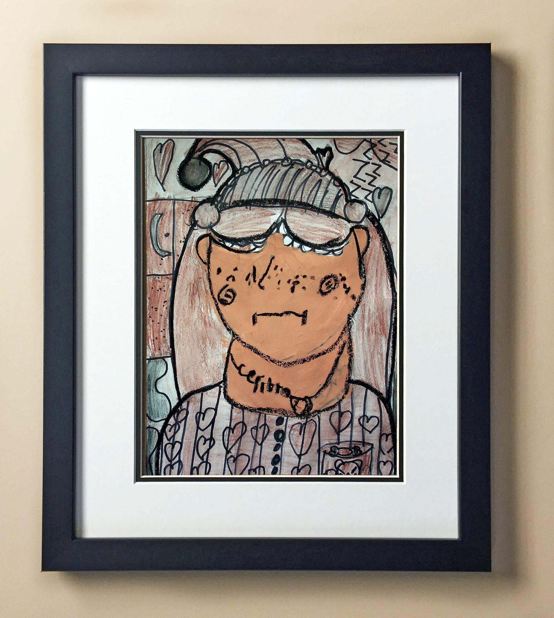 Included with the purchase is the Students Artwork, Frame, double matboard, shatter proof plexiglass, and a ready to hang backerboard with turnbuttons