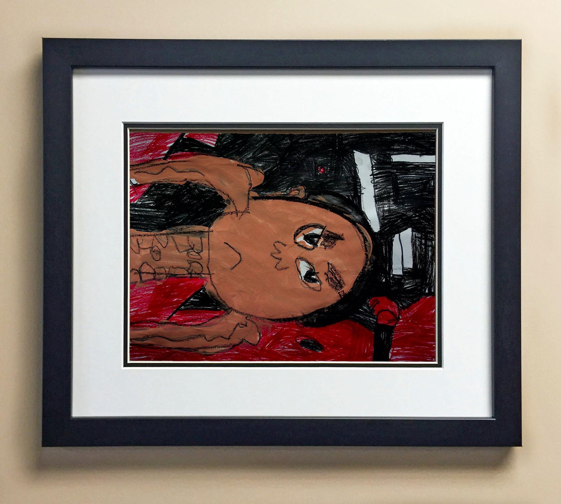 Included with the purchase is the Students Artwork, Frame, double matboard, shatter proof plexiglass, and a ready to hang backerboard with turnbuttons