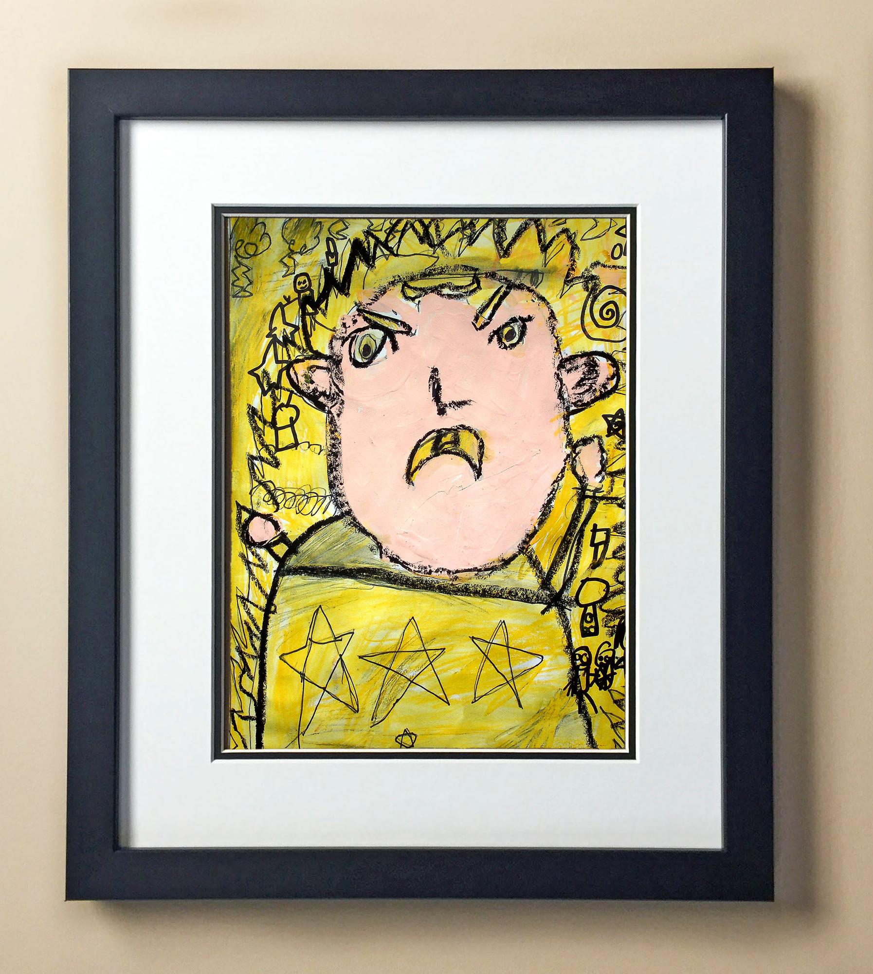 Included with the purchase is the Students Artwork, Frame, double matboard, shatter proof plexiglass, and a ready to hang backerboard with turnbuttons