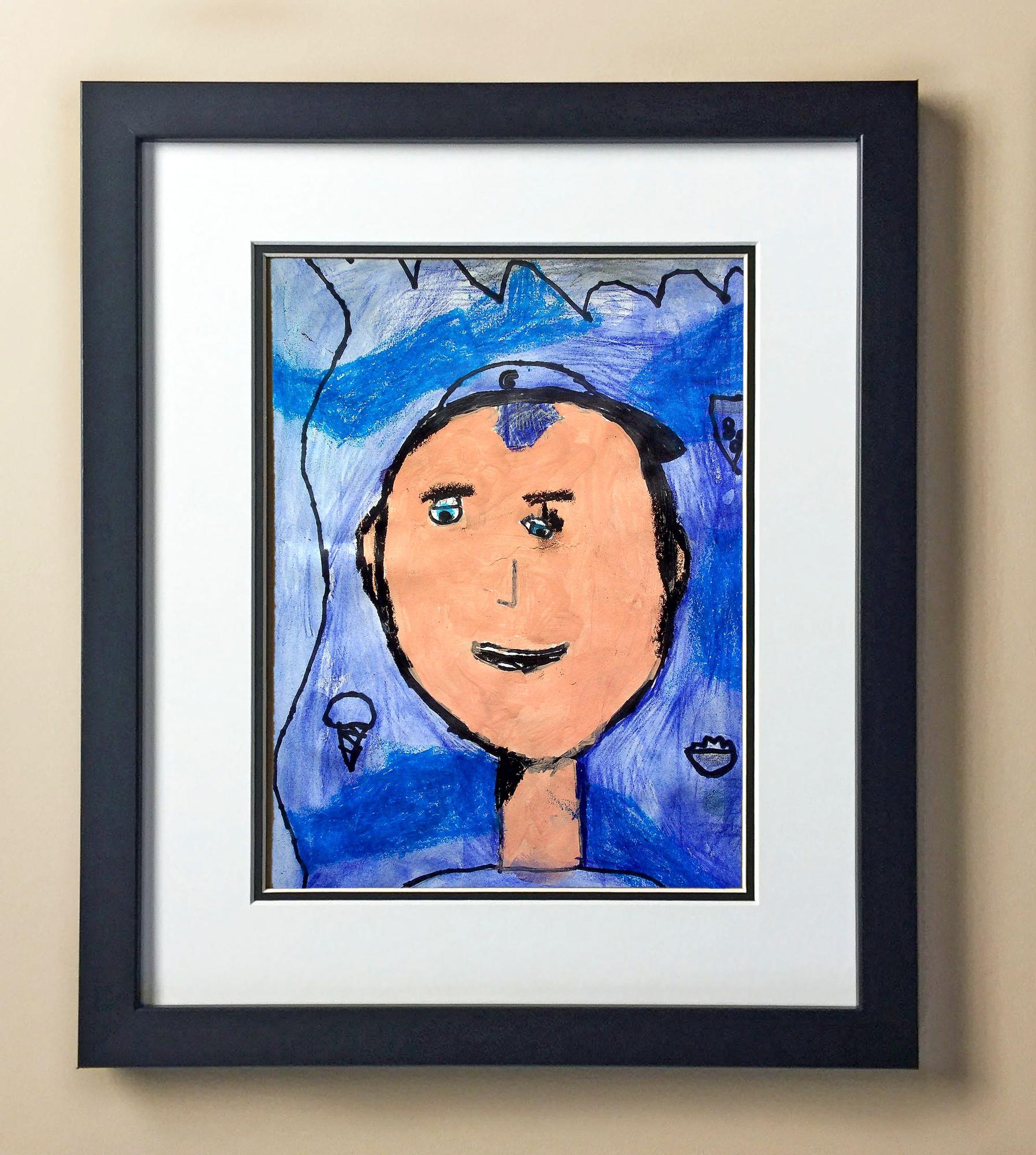 Included with the purchase is the Students Artwork, Frame, double matboard, shatter proof plexiglass, and a ready to hang backerboard with turnbuttons