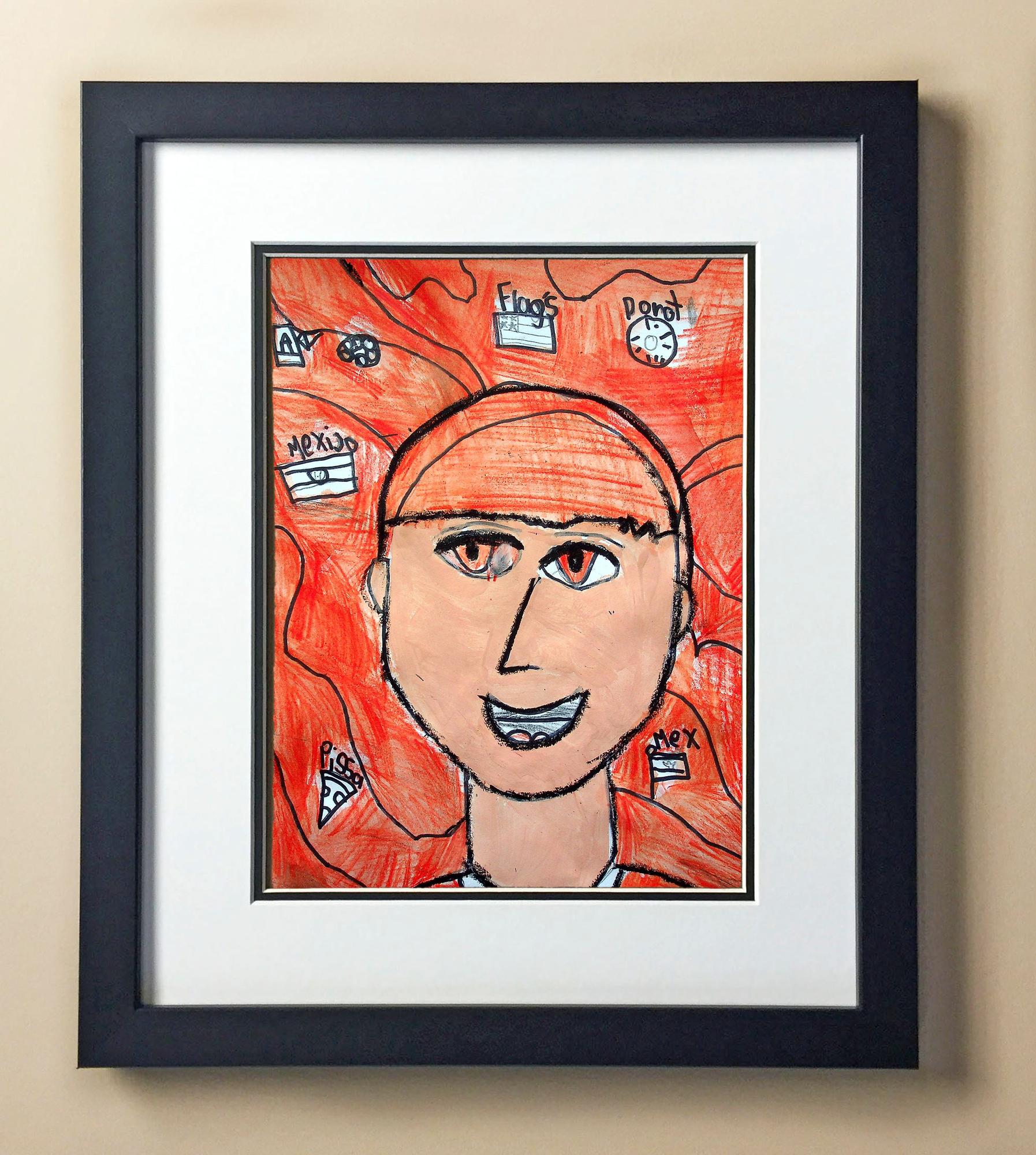 Included with the purchase is the Students Artwork, Frame, double matboard, shatter proof plexiglass, and a ready to hang backerboard with turnbuttons