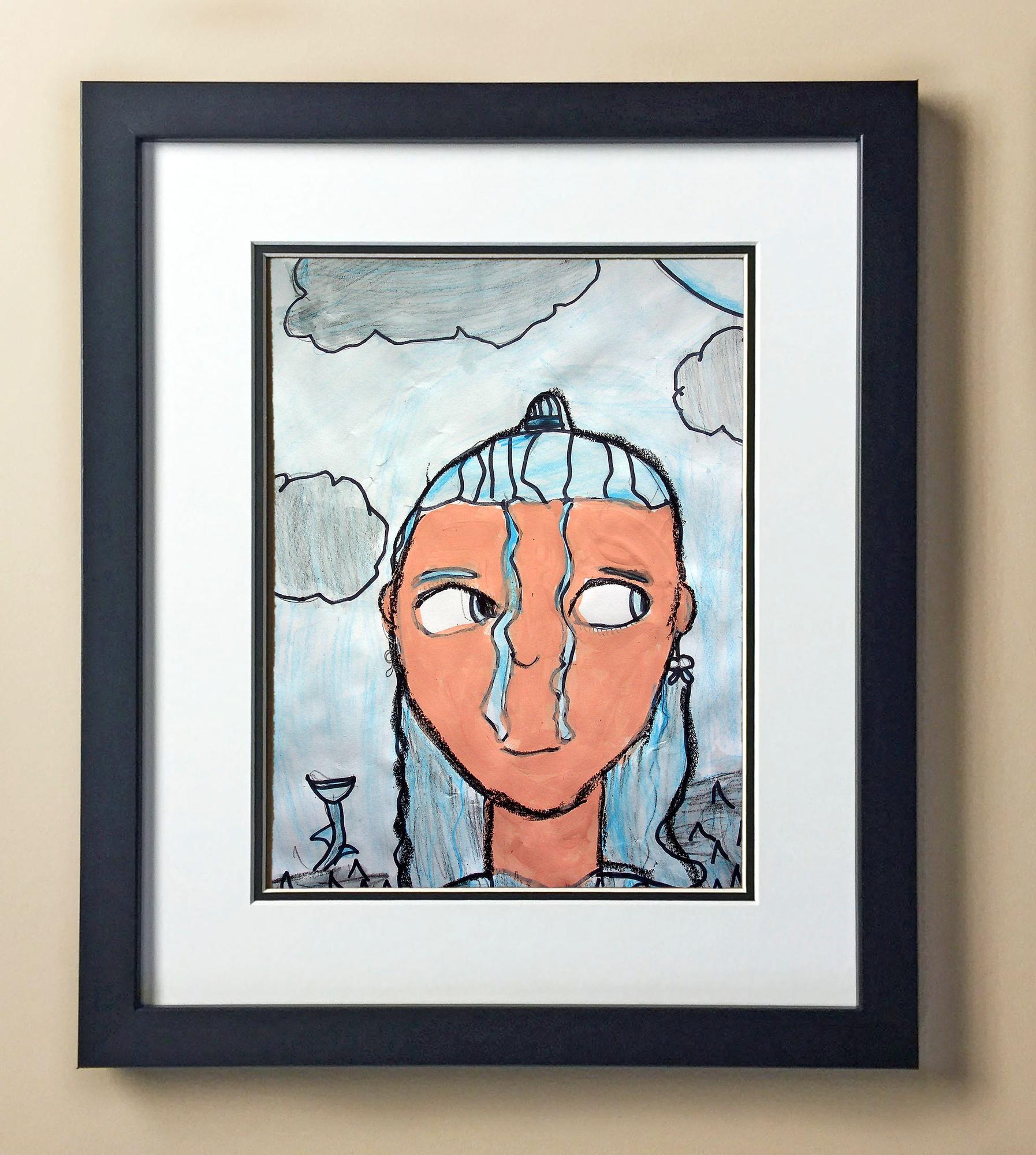 Included with the purchase is the Students Artwork, Frame, double matboard, shatter proof plexiglass, and a ready to hang backerboard with turnbuttons