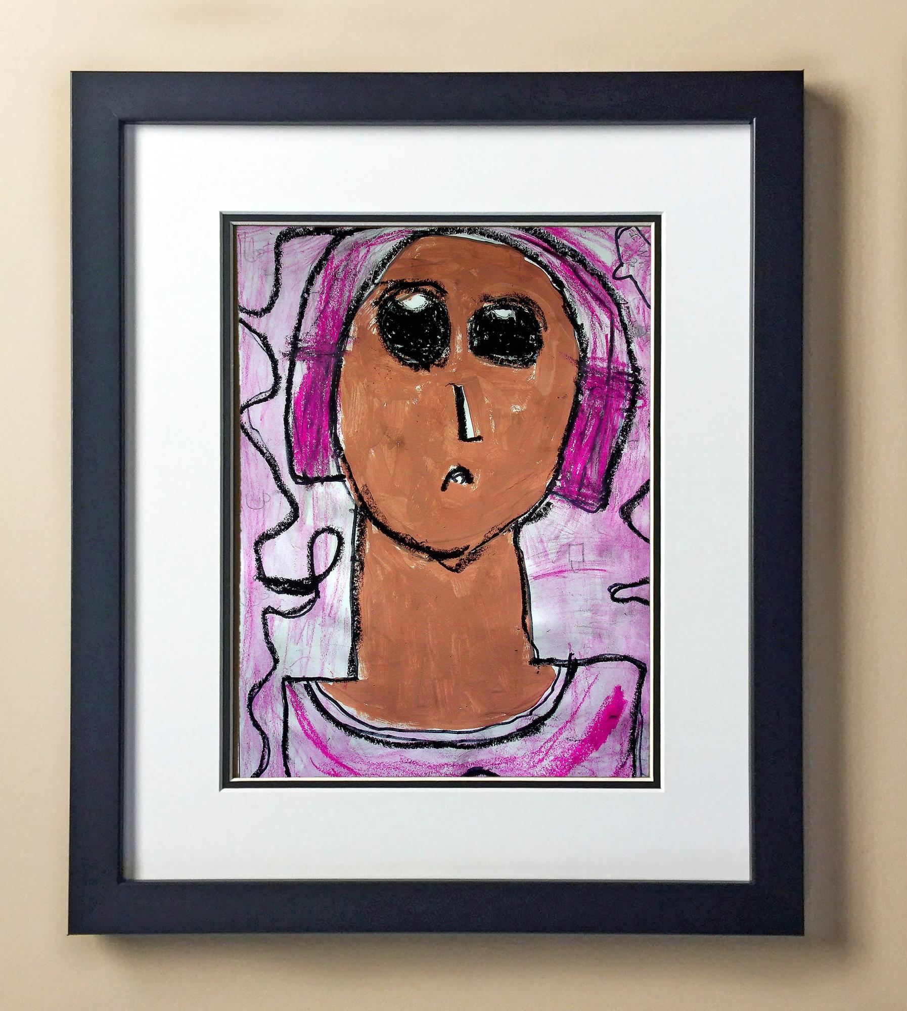 Included with the purchase is the Students Artwork, Frame, double matboard, shatter proof plexiglass, and a ready to hang backerboard with turnbuttons