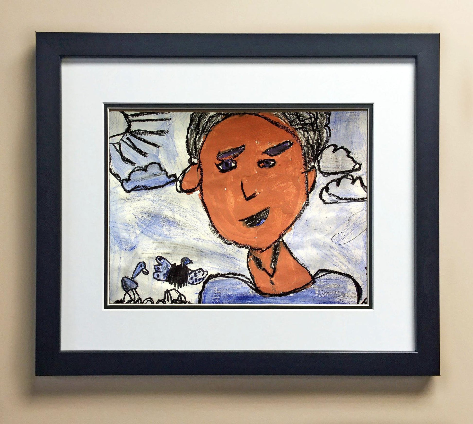Included with the purchase is the Students Artwork, Frame, double matboard, shatter proof plexiglass, and a ready to hang backerboard with turnbuttons