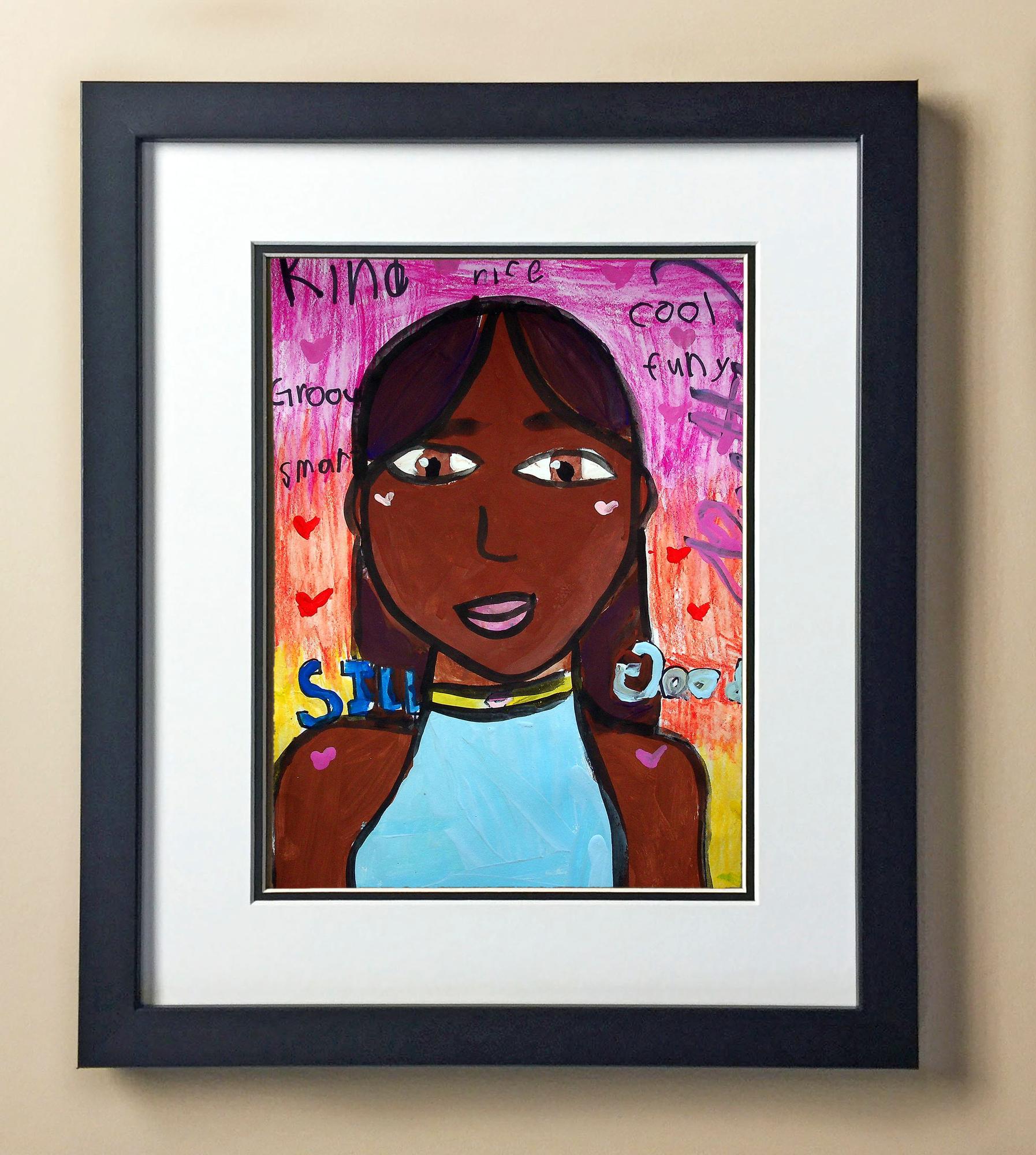Included with the purchase is the Students Artwork, Frame, double matboard, shatter proof plexiglass, and a ready to hang backerboard with turnbuttons