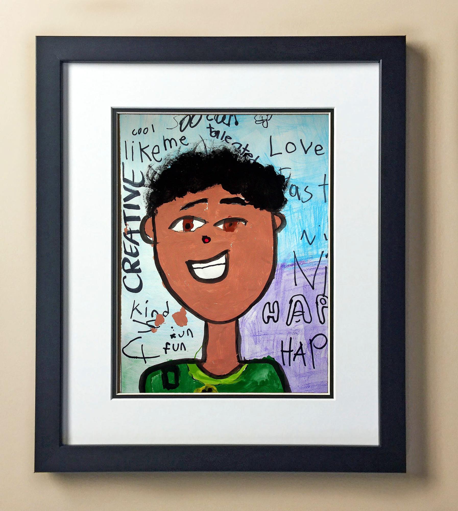 Included with the purchase is the Students Artwork, Frame, double matboard, shatter proof plexiglass, and a ready to hang backerboard with turnbuttons