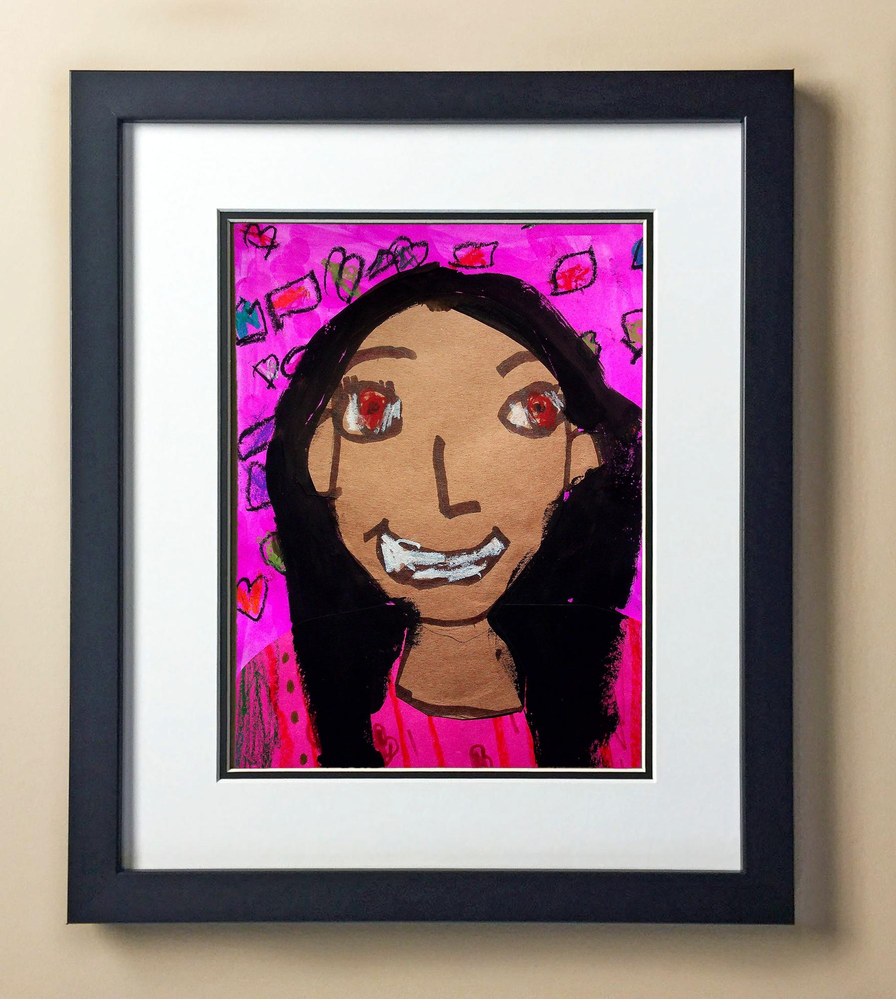 Included with the purchase is the Students Artwork, Frame, double matboard, shatter proof plexiglass, and a ready to hang backerboard with turnbuttons