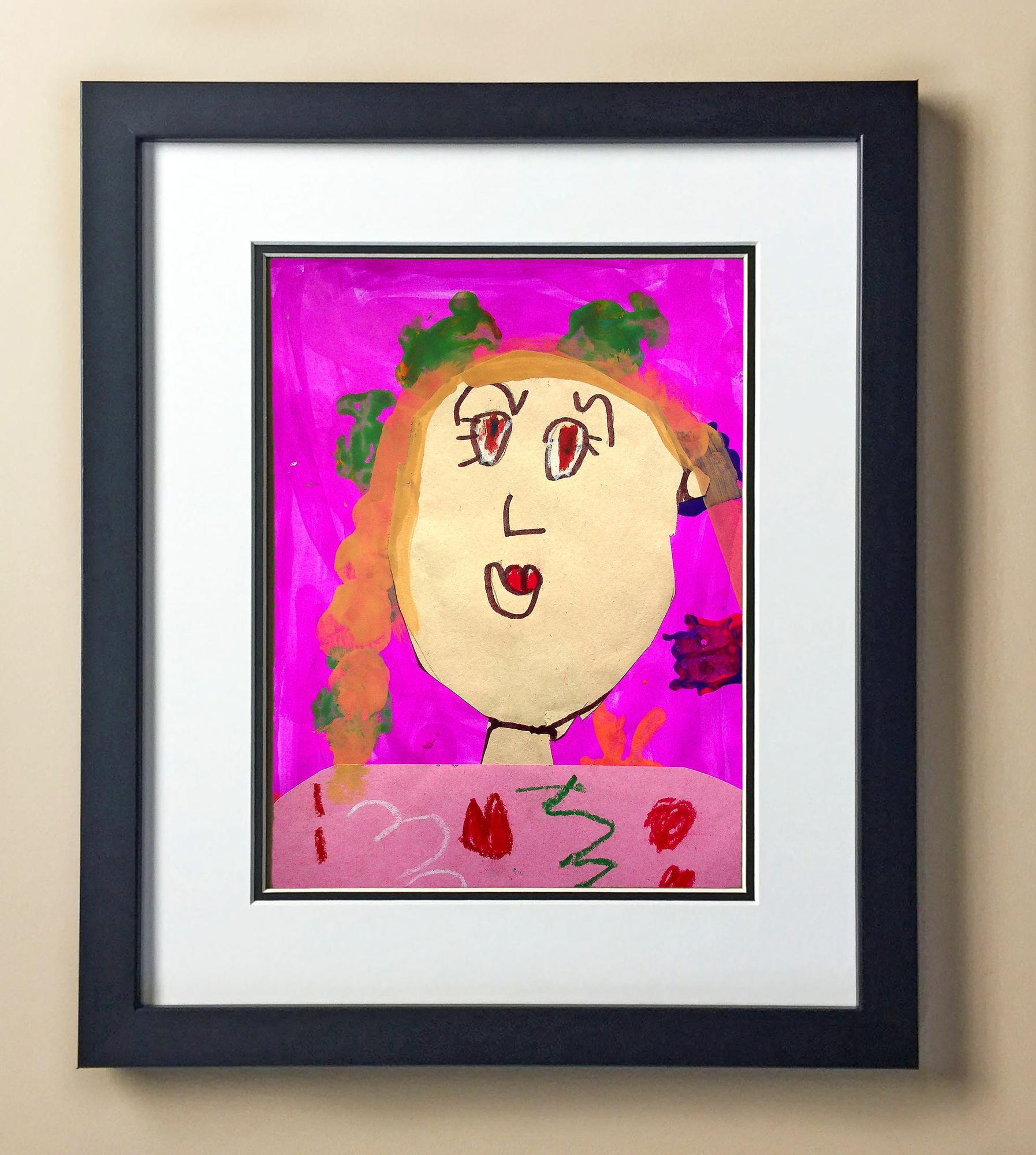 Included with the purchase is the Students Artwork, Frame, double matboard, shatter proof plexiglass, and a ready to hang backerboard with turnbuttons