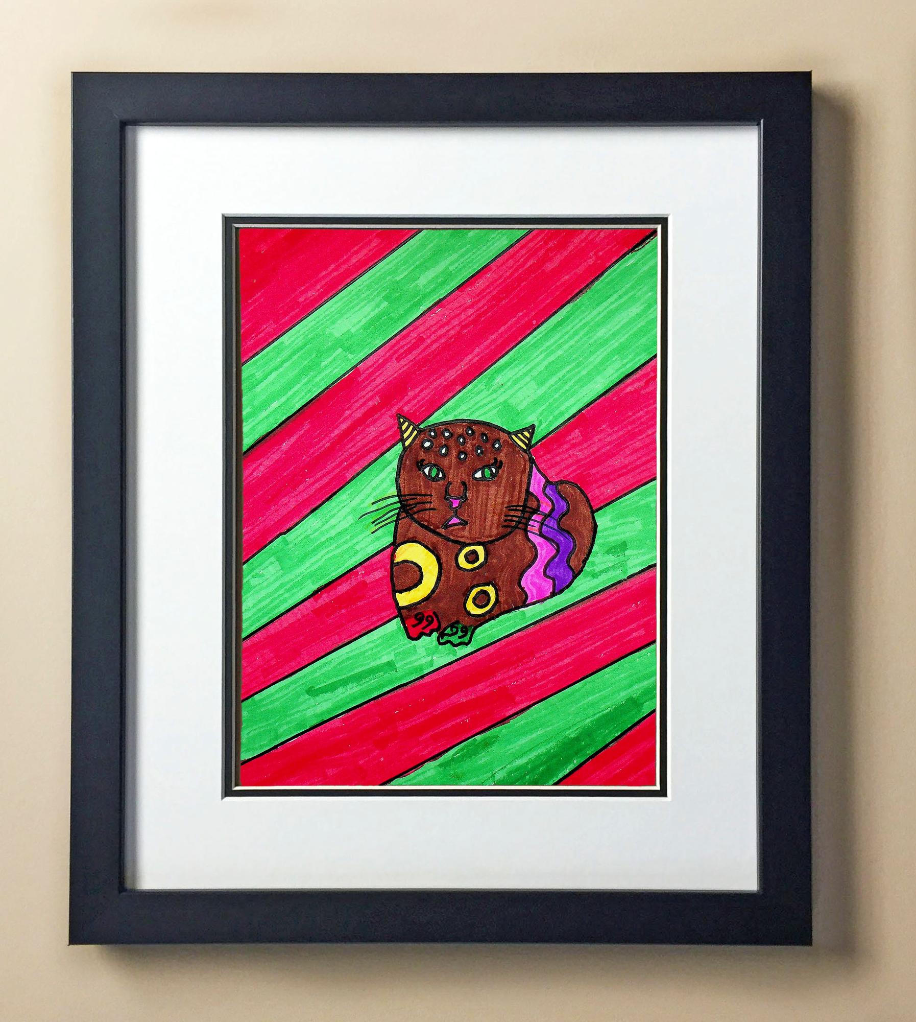 Included with the purchase is the Students Artwork, Frame, double matboard, shatter proof plexiglass, and a ready to hang backerboard with turnbuttons