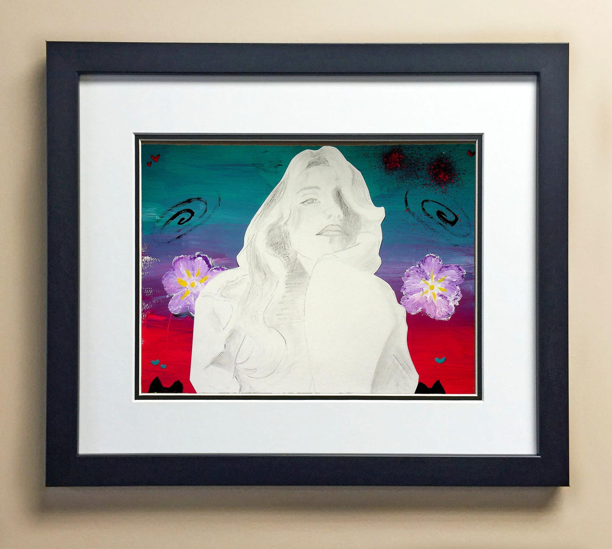 Included with the purchase is the Students Artwork, Frame, double matboard, shatter proof plexiglass, and a ready to hang backerboard with turnbuttons