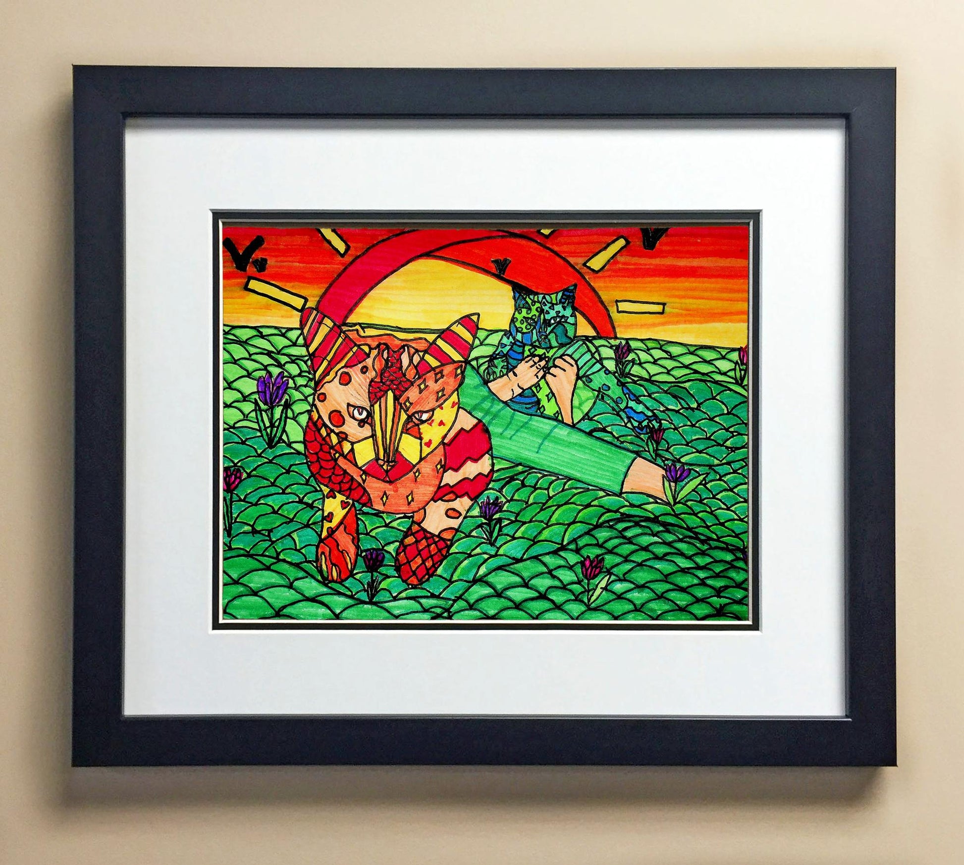 Included with the purchase is the Students Artwork, Frame, double matboard, shatter proof plexiglass, and a ready to hang backerboard with turnbuttons