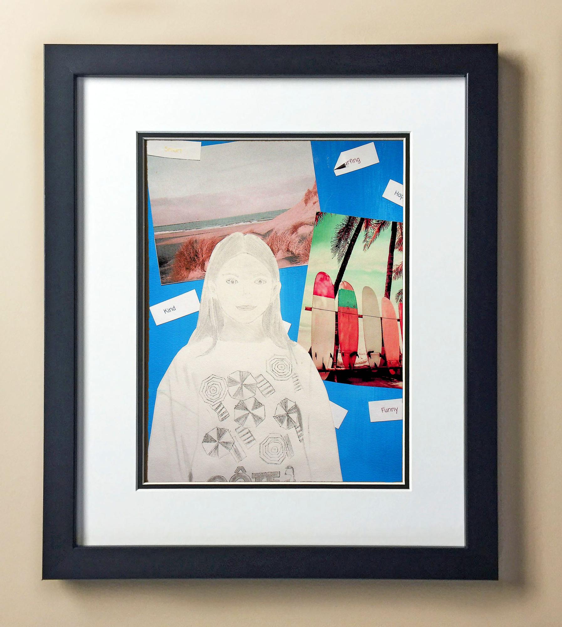 Included with the purchase is the Students Artwork, Frame, double matboard, shatter proof plexiglass, and a ready to hang backerboard with turnbuttons