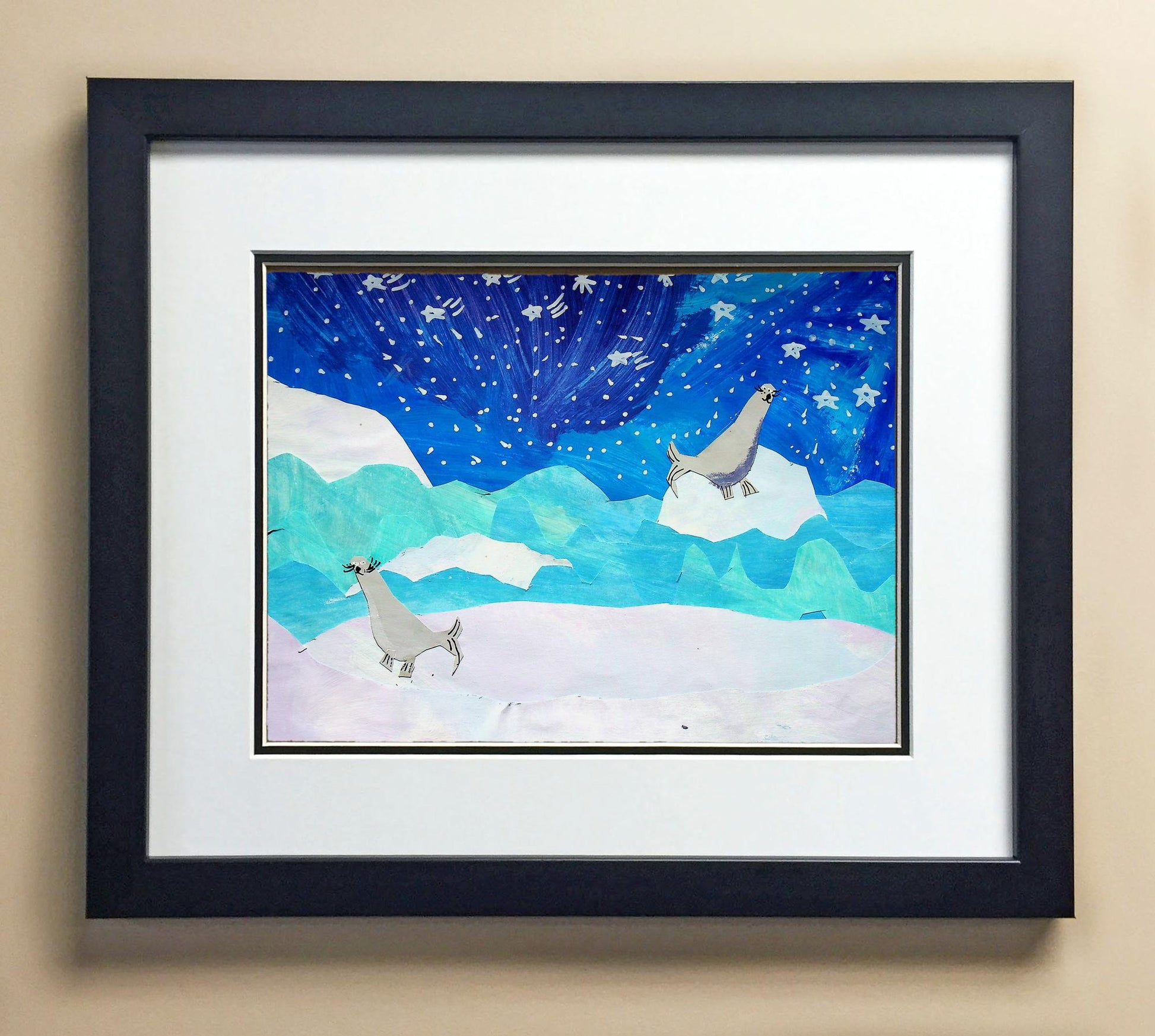 Included with the purchase is the Students Artwork, Frame, double matboard, shatter proof plexiglass, and a ready to hang backerboard with turnbuttons