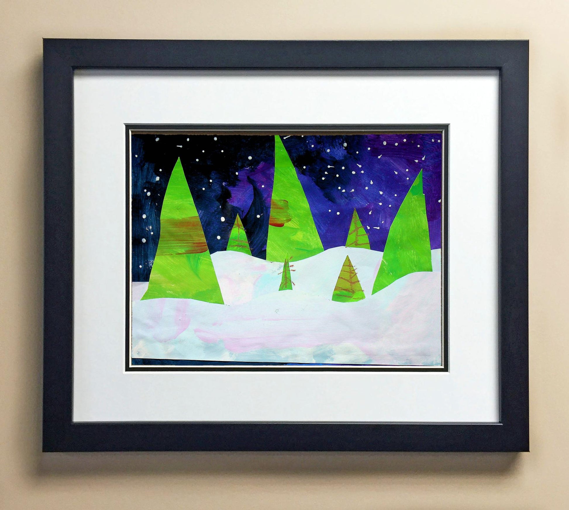 Included with the purchase is the Students Artwork, Frame, double matboard, shatter proof plexiglass, and a ready to hang backerboard with turnbuttons