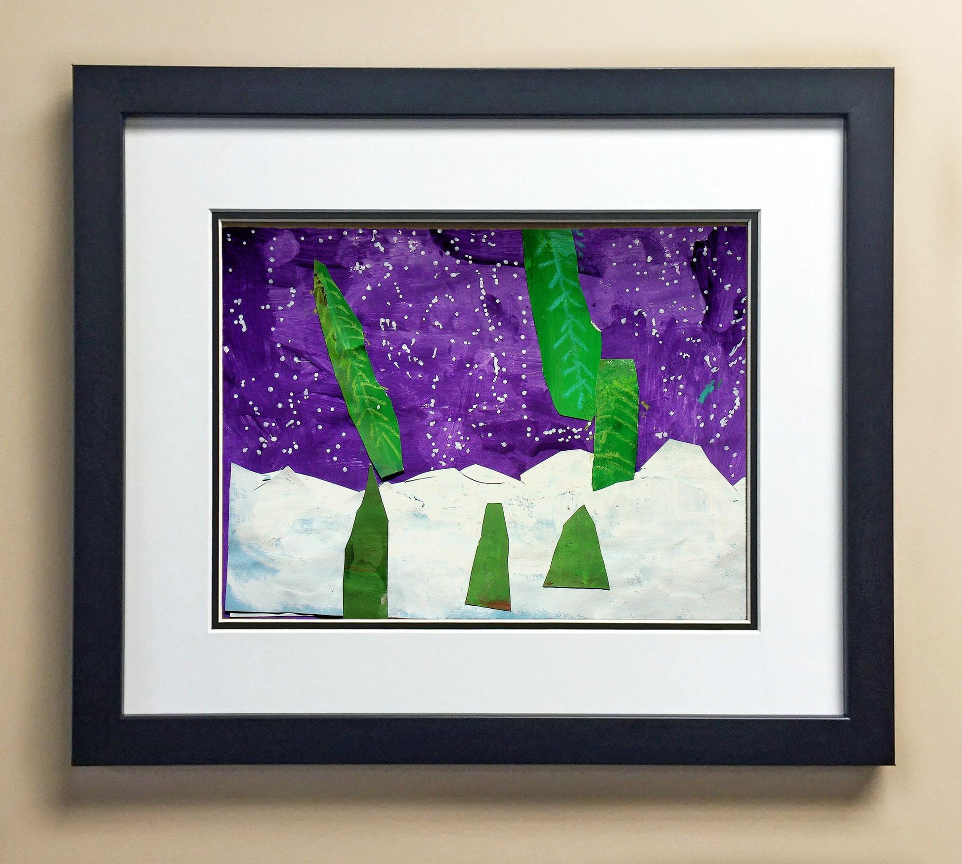 Included with the purchase is the Students Artwork, Frame, double matboard, shatter proof plexiglass, and a ready to hang backerboard with turnbuttons