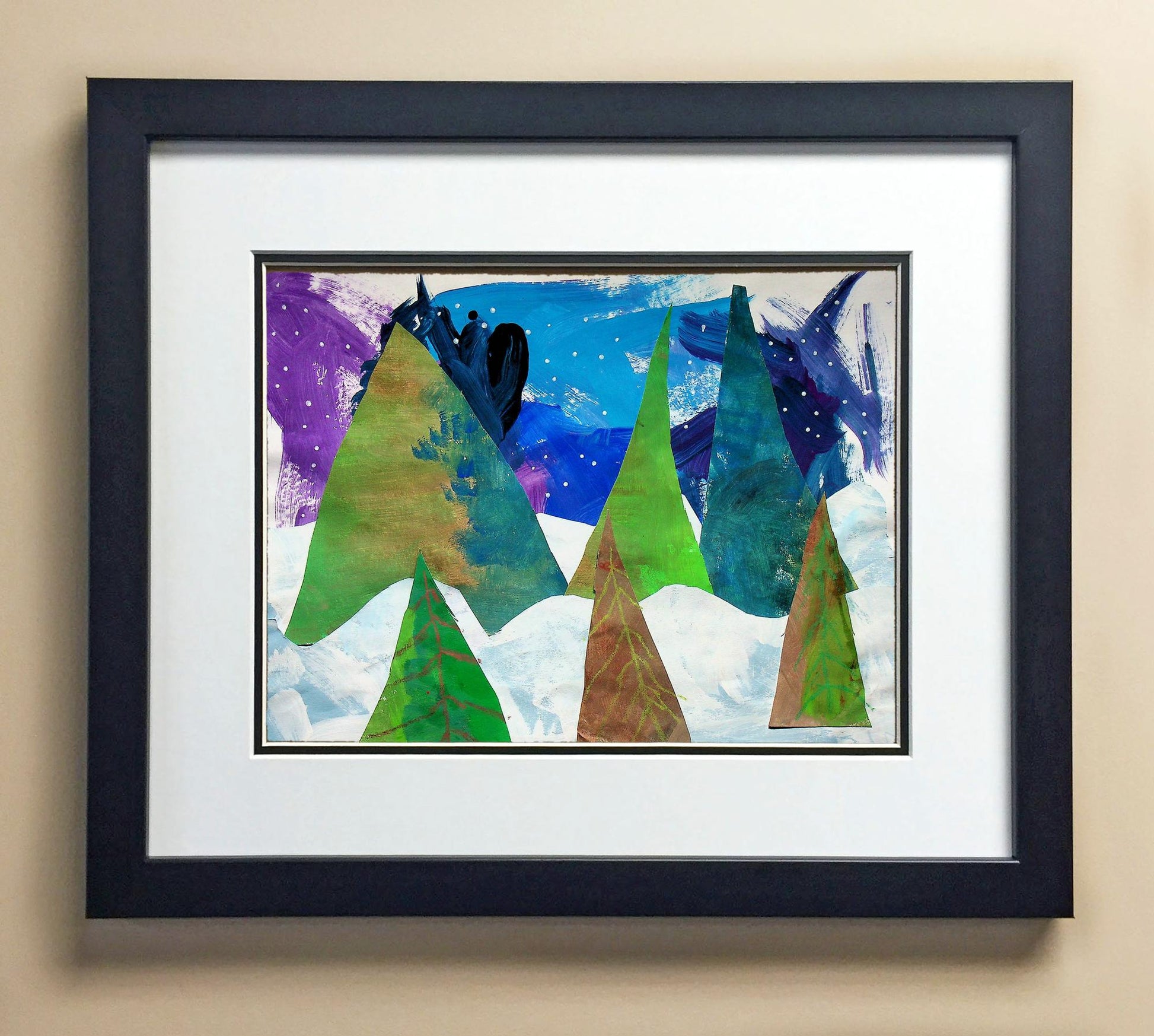Included with the purchase is the Students Artwork, Frame, double matboard, shatter proof plexiglass, and a ready to hang backerboard with turnbuttons