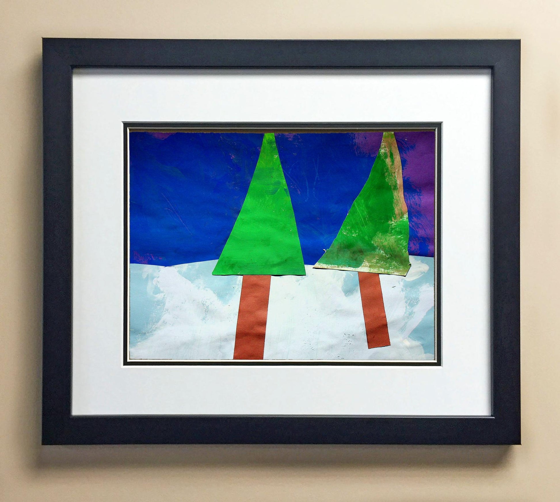 Included with the purchase is the Students Artwork, Frame, double matboard, shatter proof plexiglass, and a ready to hang backerboard with turnbuttons
