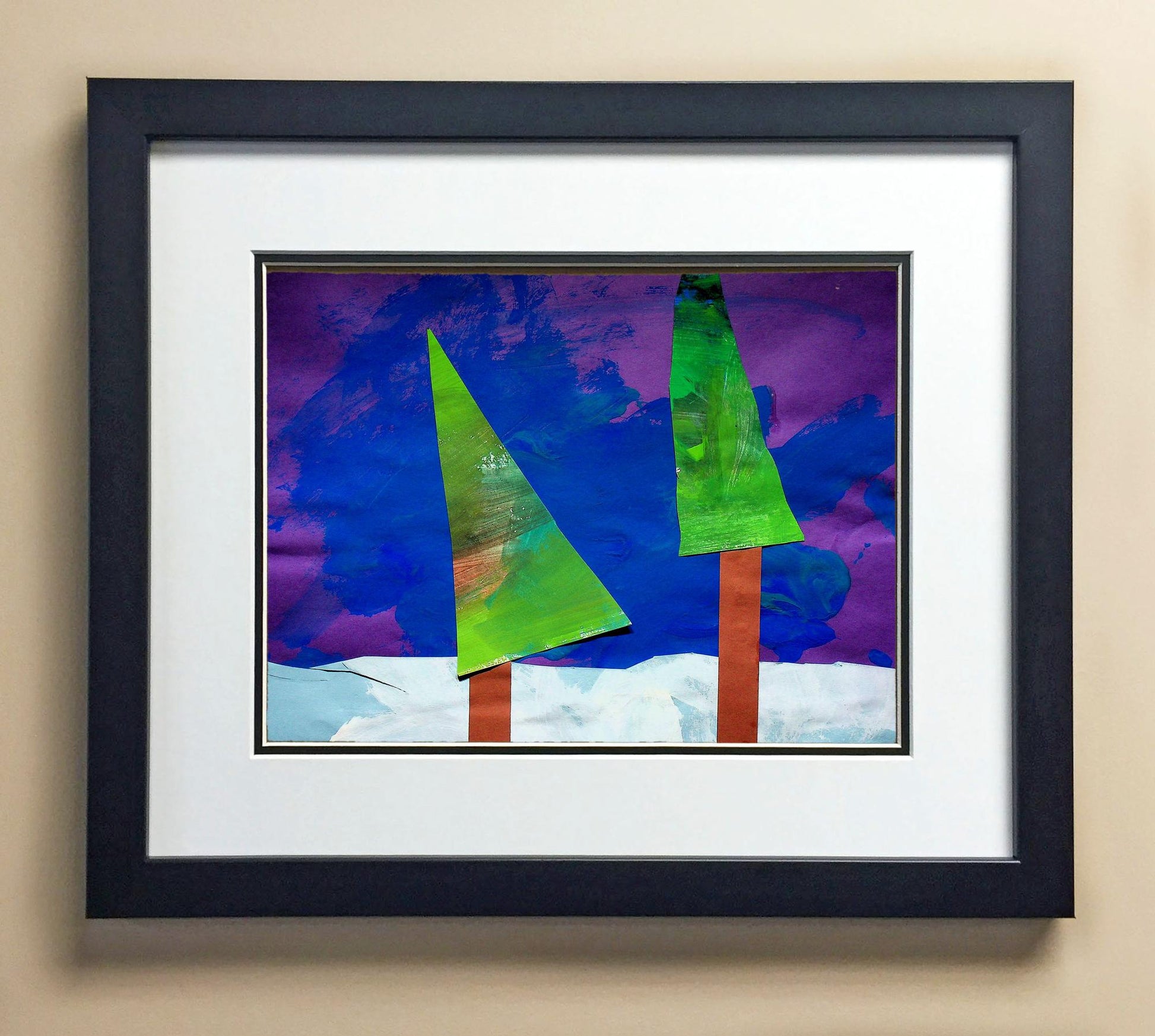 Included with the purchase is the Students Artwork, Frame, double matboard, shatter proof plexiglass, and a ready to hang backerboard with turnbuttons