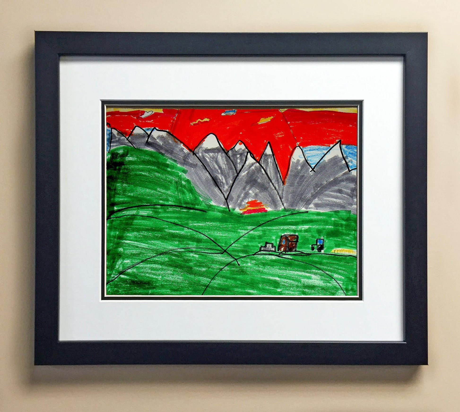 Included with the purchase is the Students Artwork, Frame, double matboard, shatter proof plexiglass, and a ready to hang backerboard with turnbuttons