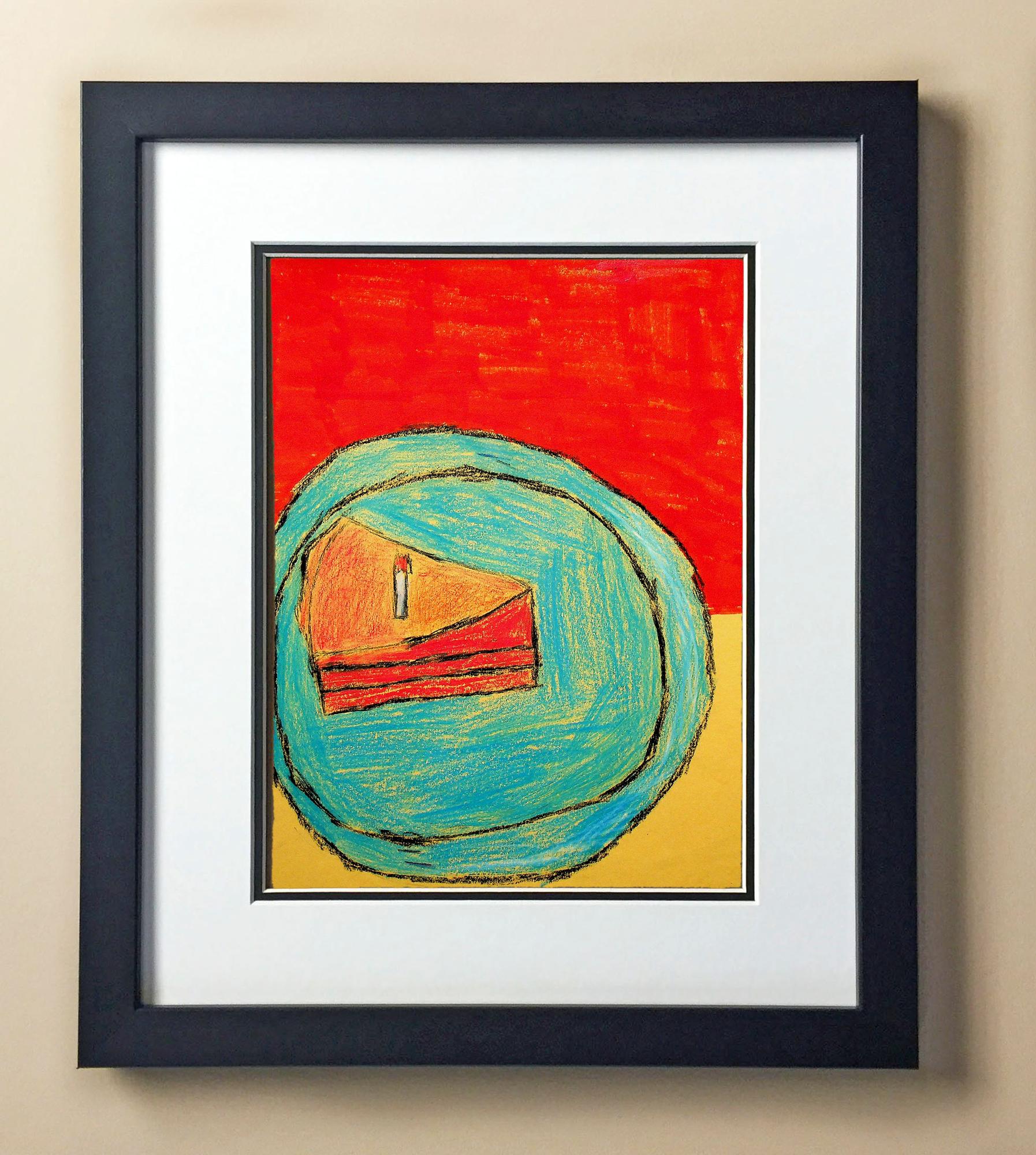 Included with the purchase is the Students Artwork, Frame, double matboard, shatter proof plexiglass, and a ready to hang backerboard with turnbuttons