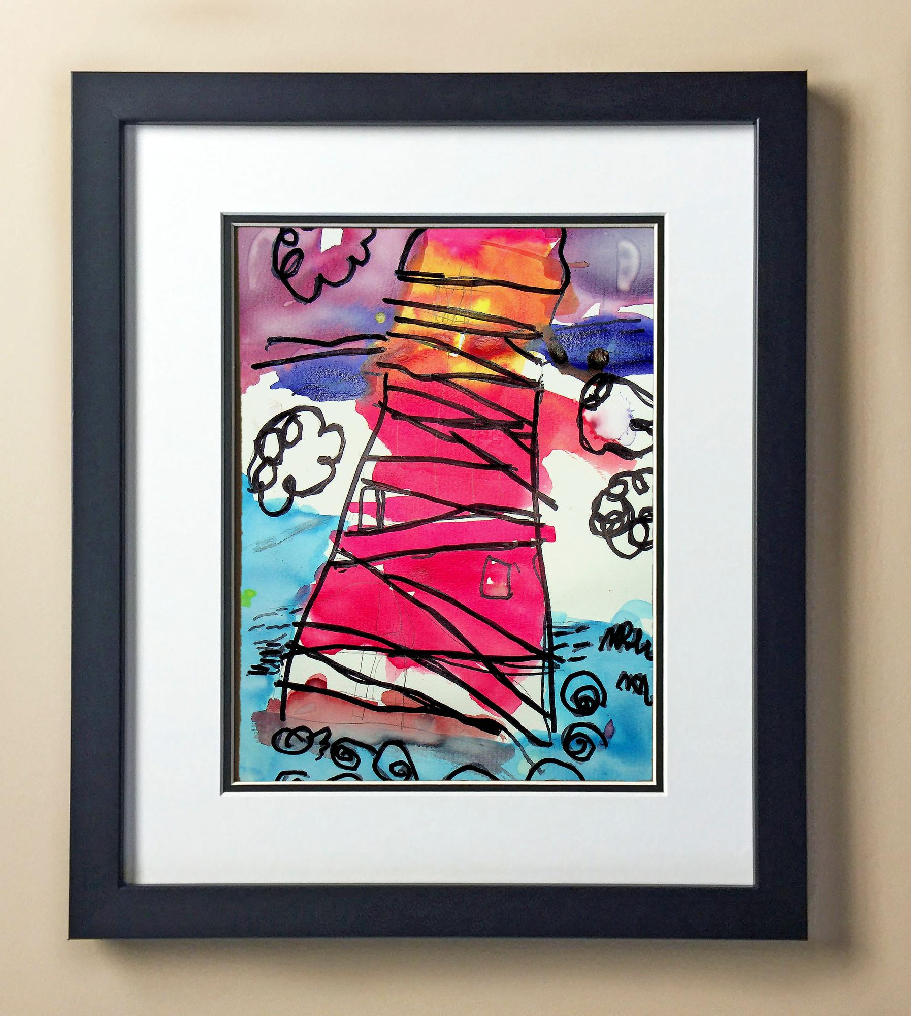 Included with the purchase is the Students Artwork, Frame, double matboard, shatter proof plexiglass, and a ready to hang backerboard with turnbuttons