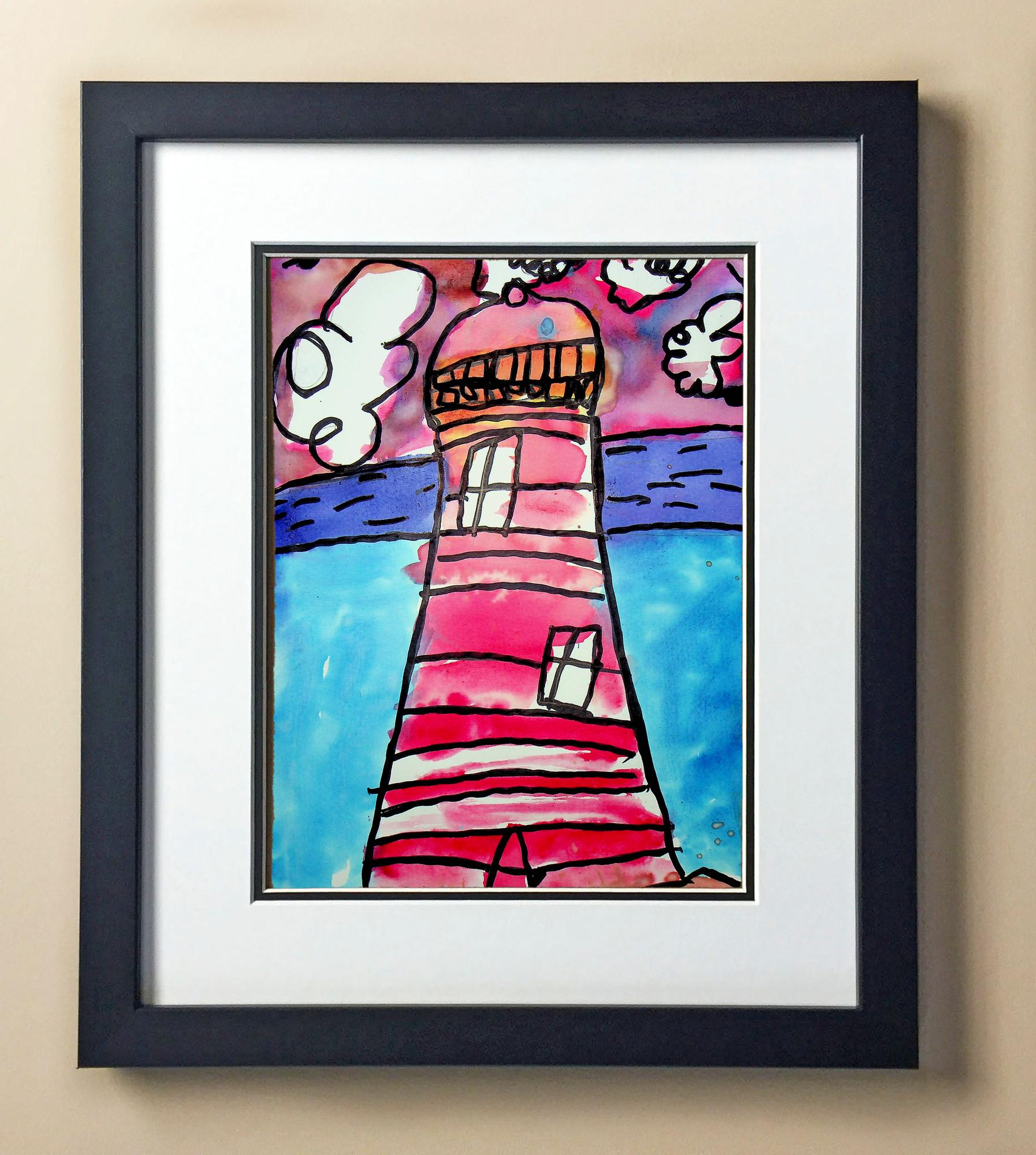 Included with the purchase is the Students Artwork, Frame, double matboard, shatter proof plexiglass, and a ready to hang backerboard with turnbuttons