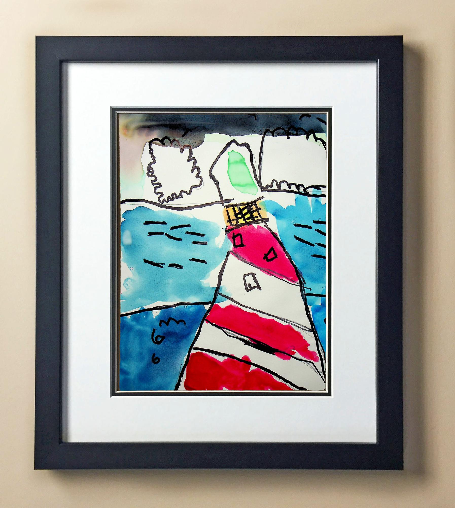 Included with the purchase is the Students Artwork, Frame, double matboard, shatter proof plexiglass, and a ready to hang backerboard with turnbuttons