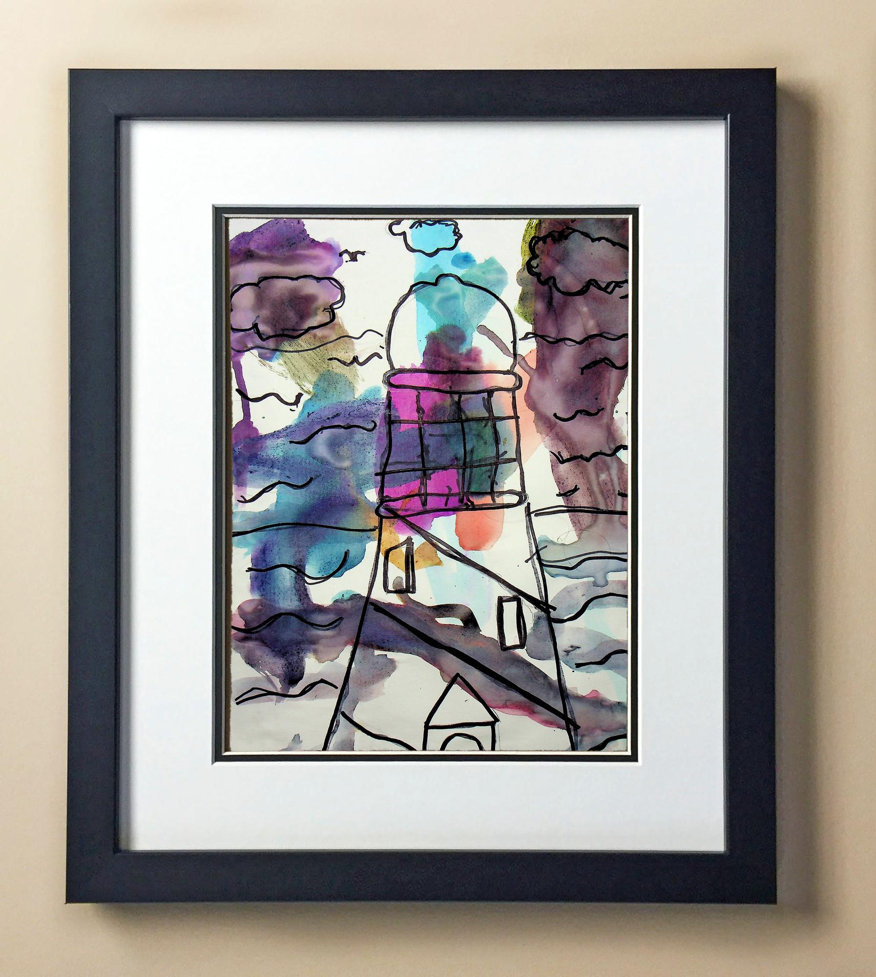 Included with the purchase is the Students Artwork, Frame, double matboard, shatter proof plexiglass, and a ready to hang backerboard with turnbuttons