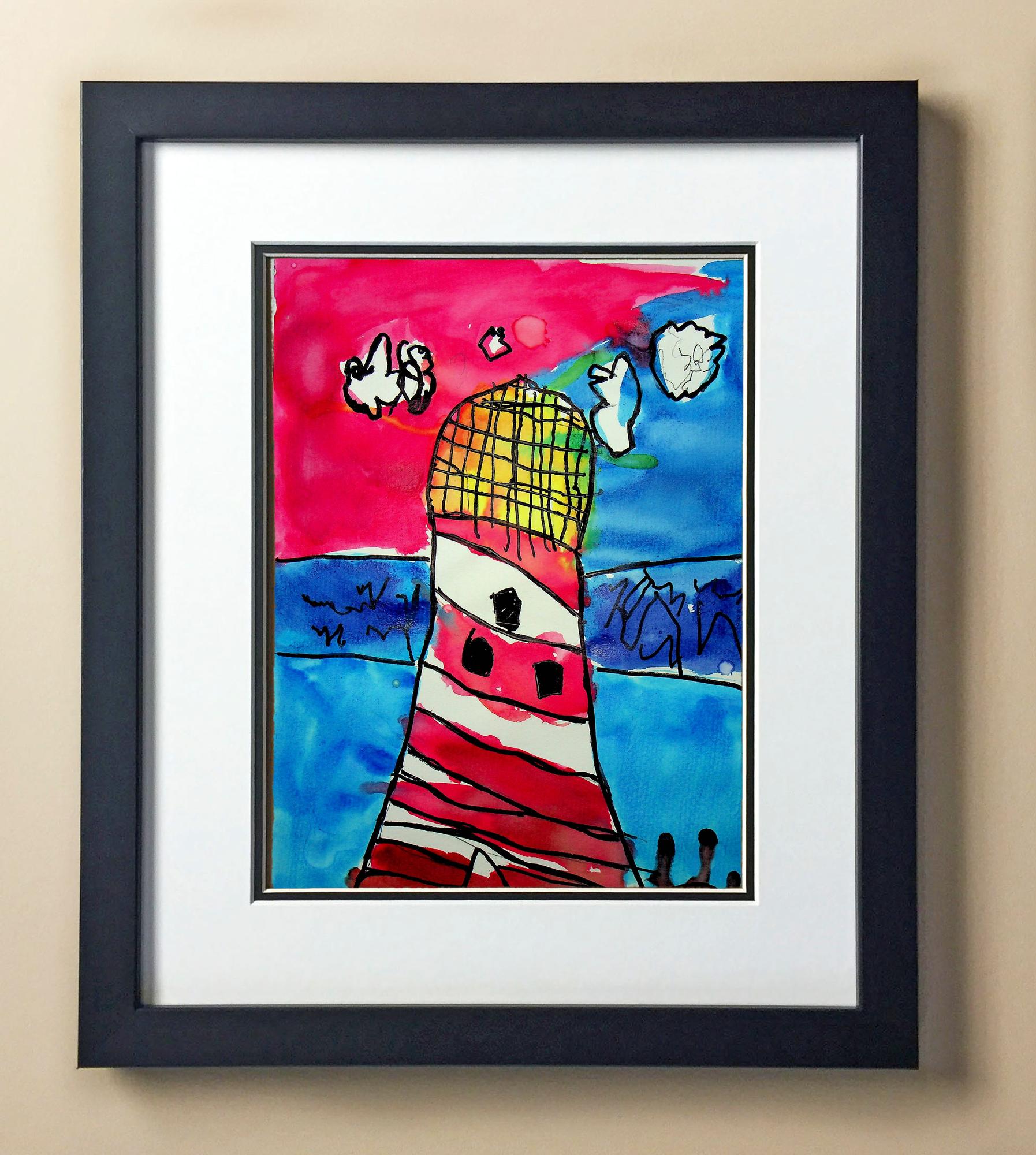Included with the purchase is the Students Artwork, Frame, double matboard, shatter proof plexiglass, and a ready to hang backerboard with turnbuttons