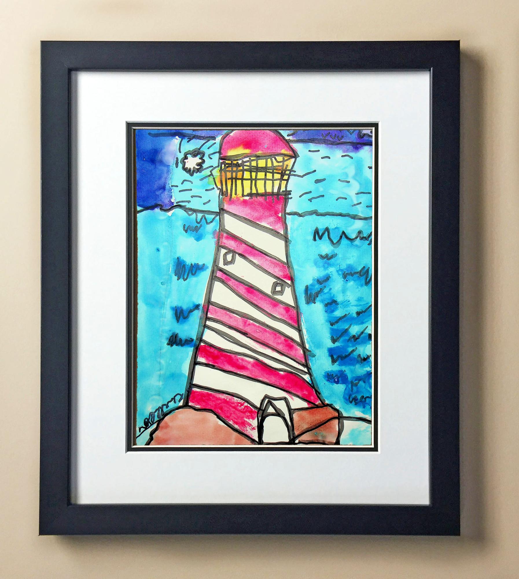 Included with the purchase is the Students Artwork, Frame, double matboard, shatter proof plexiglass, and a ready to hang backerboard with turnbuttons