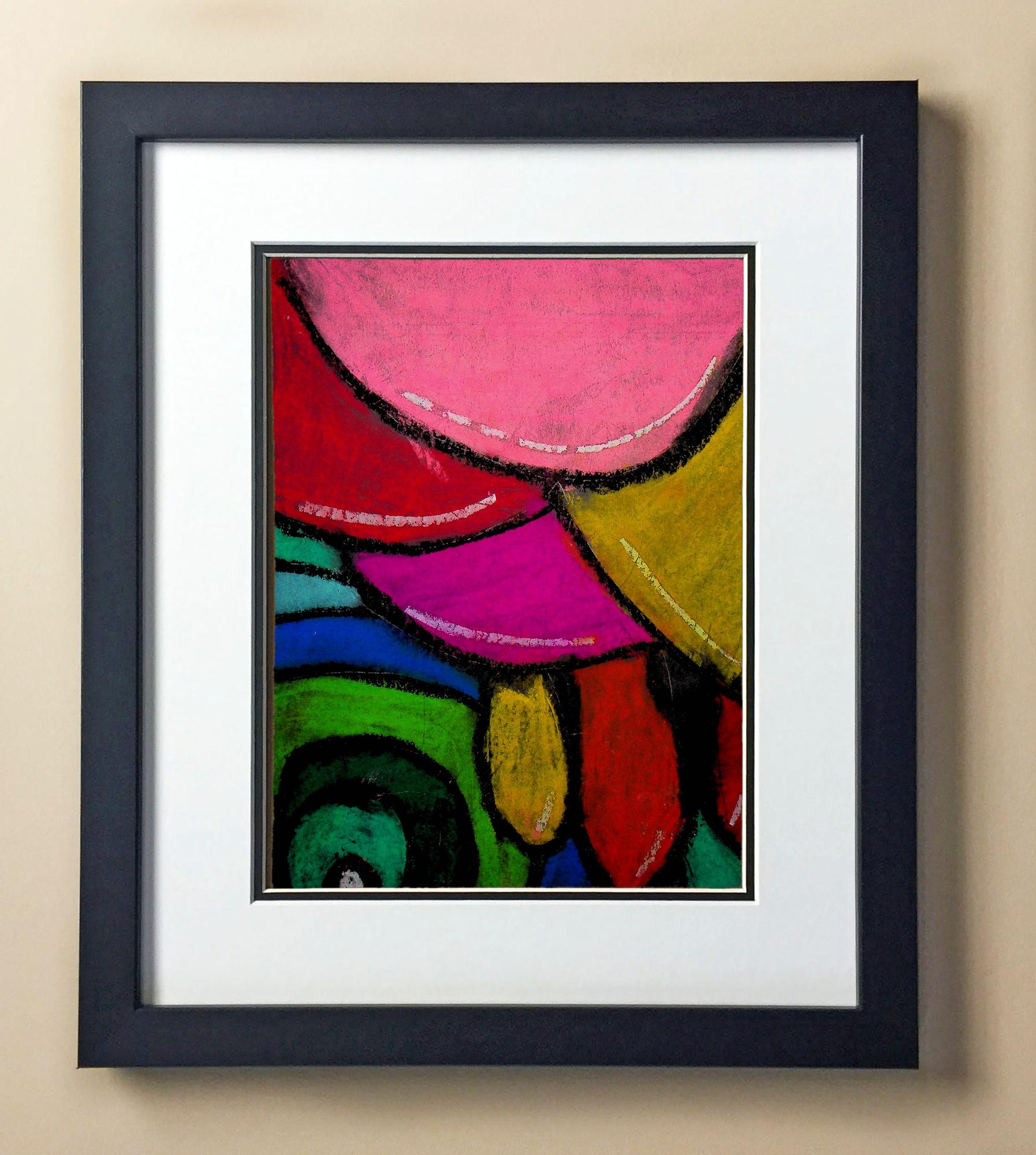 Included with the purchase is the Students Artwork, Frame, double matboard, shatter proof plexiglass, and a ready to hang backerboard with turnbuttons