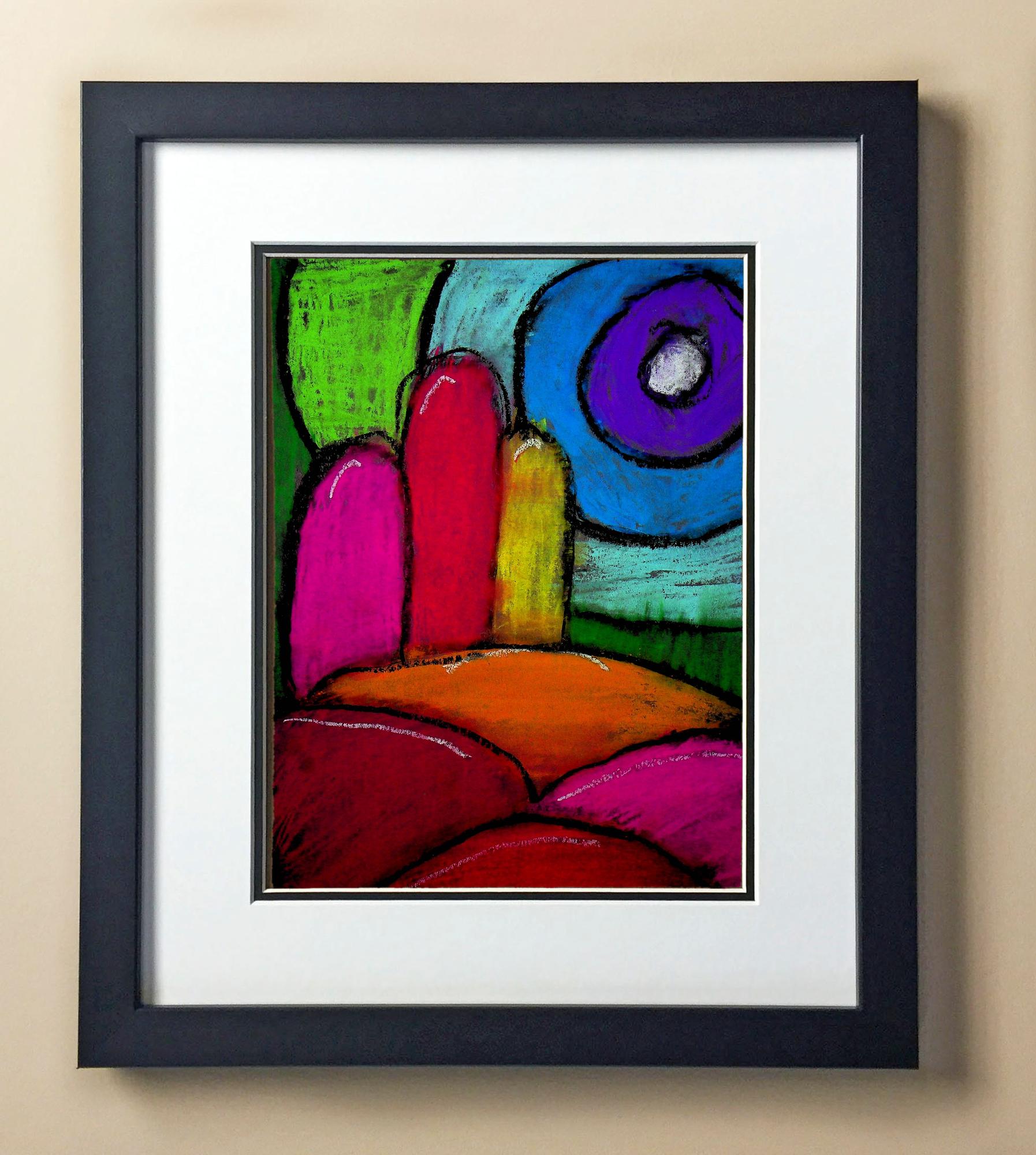 Included with the purchase is the Students Artwork, Frame, double matboard, shatter proof plexiglass, and a ready to hang backerboard with turnbuttons
