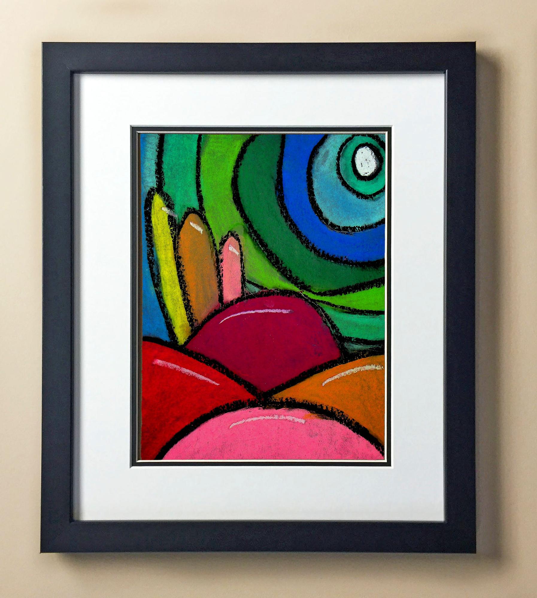 Included with the purchase is the Students Artwork, Frame, double matboard, shatter proof plexiglass, and a ready to hang backerboard with turnbuttons