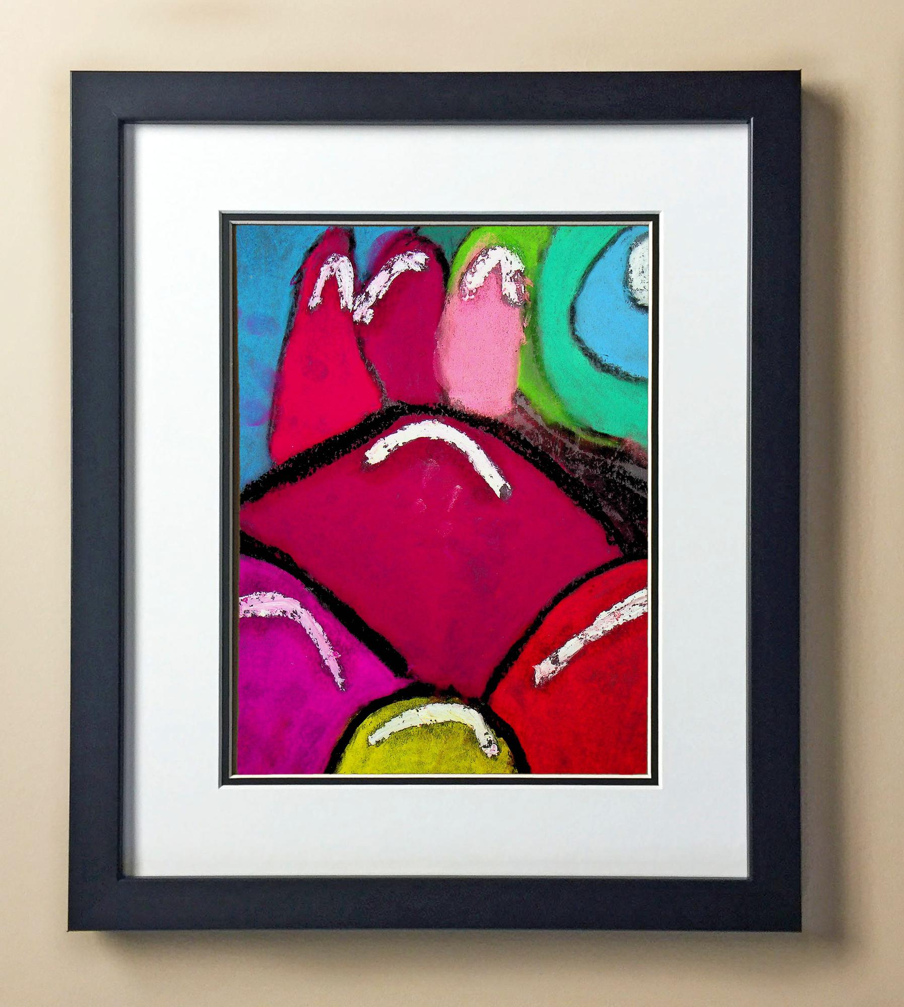 Included with the purchase is the Students Artwork, Frame, double matboard, shatter proof plexiglass, and a ready to hang backerboard with turnbuttons