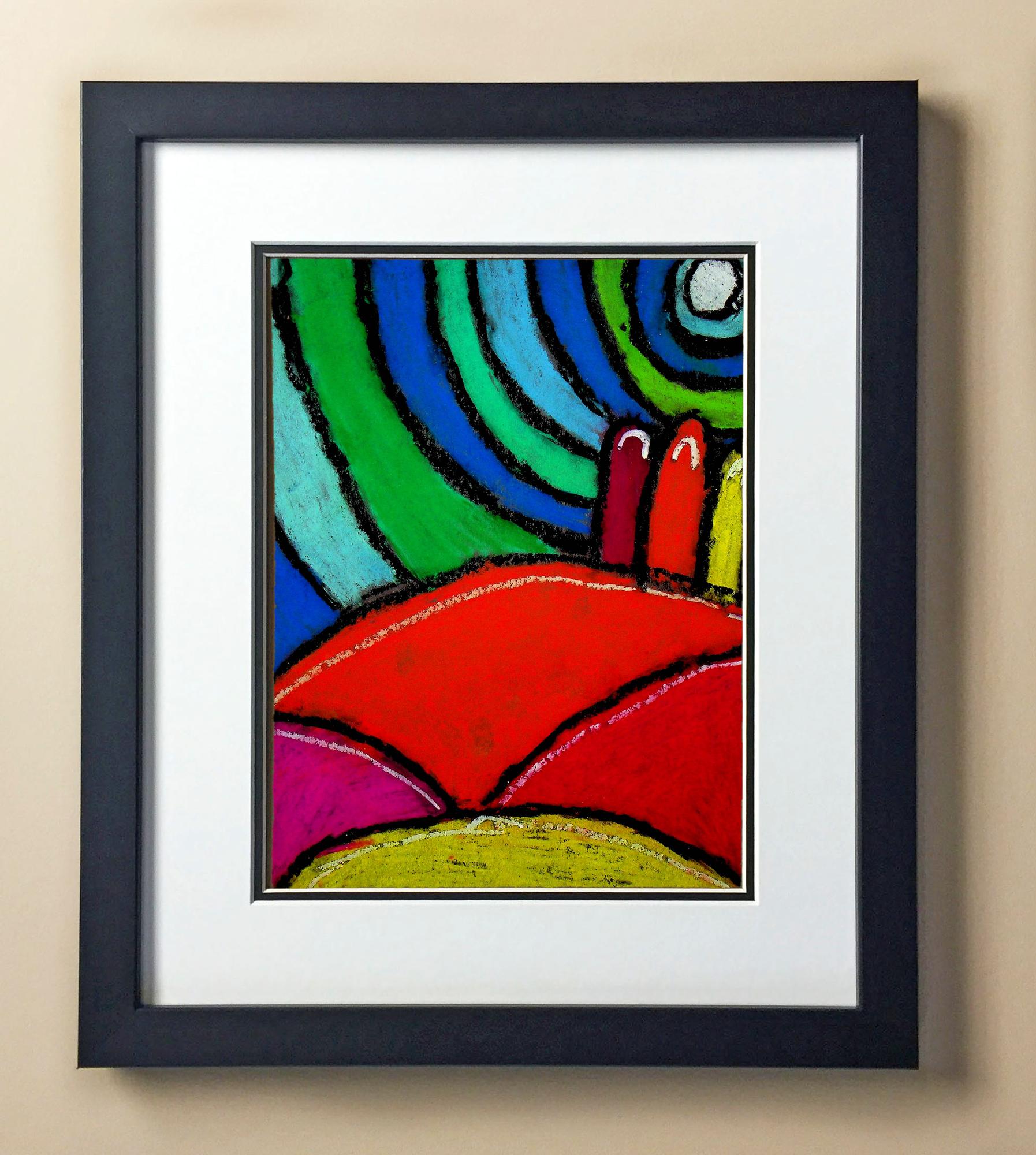 Included with the purchase is the Students Artwork, Frame, double matboard, shatter proof plexiglass, and a ready to hang backerboard with turnbuttons