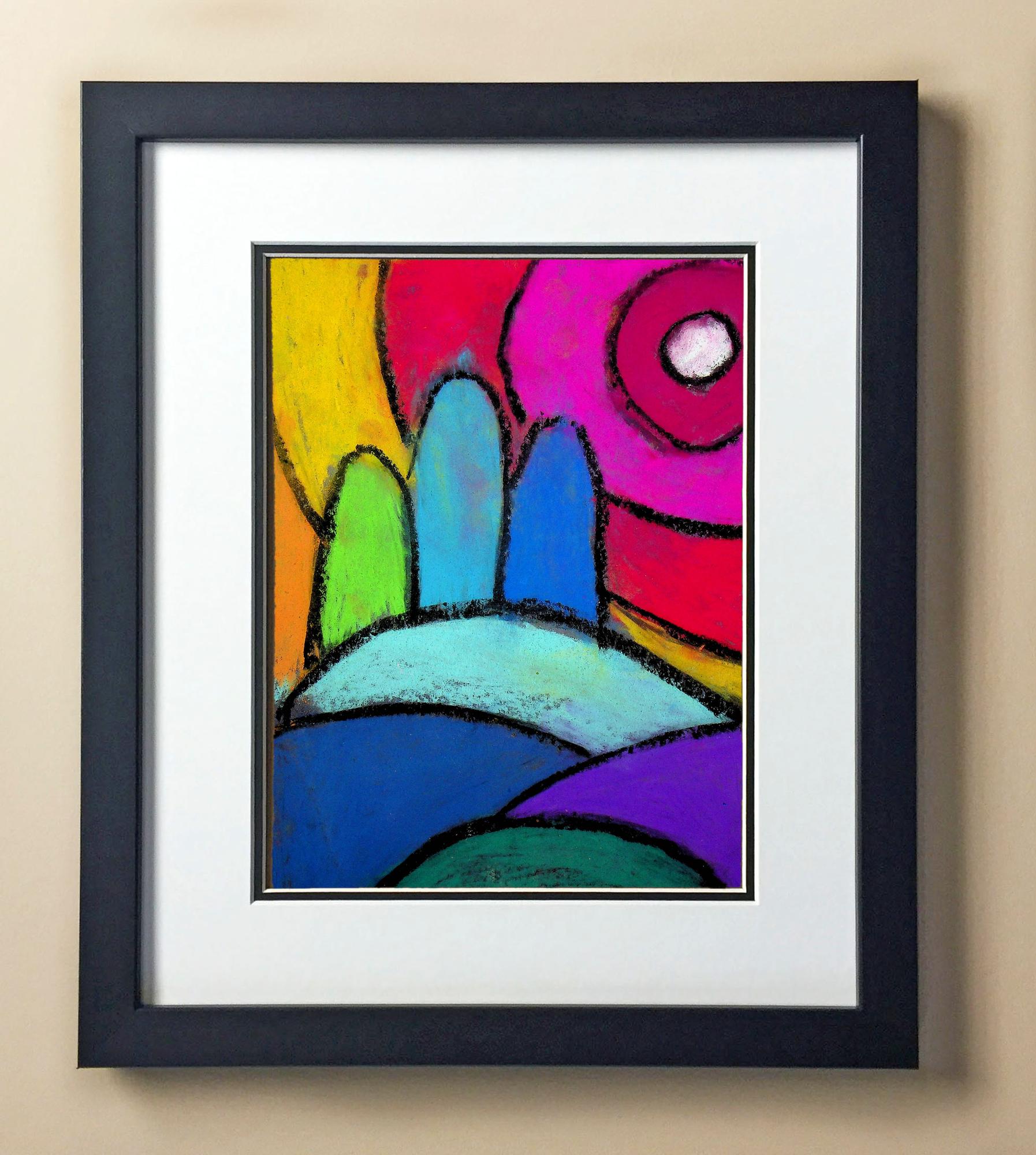 Included with the purchase is the Students Artwork, Frame, double matboard, shatter proof plexiglass, and a ready to hang backerboard with turnbuttons