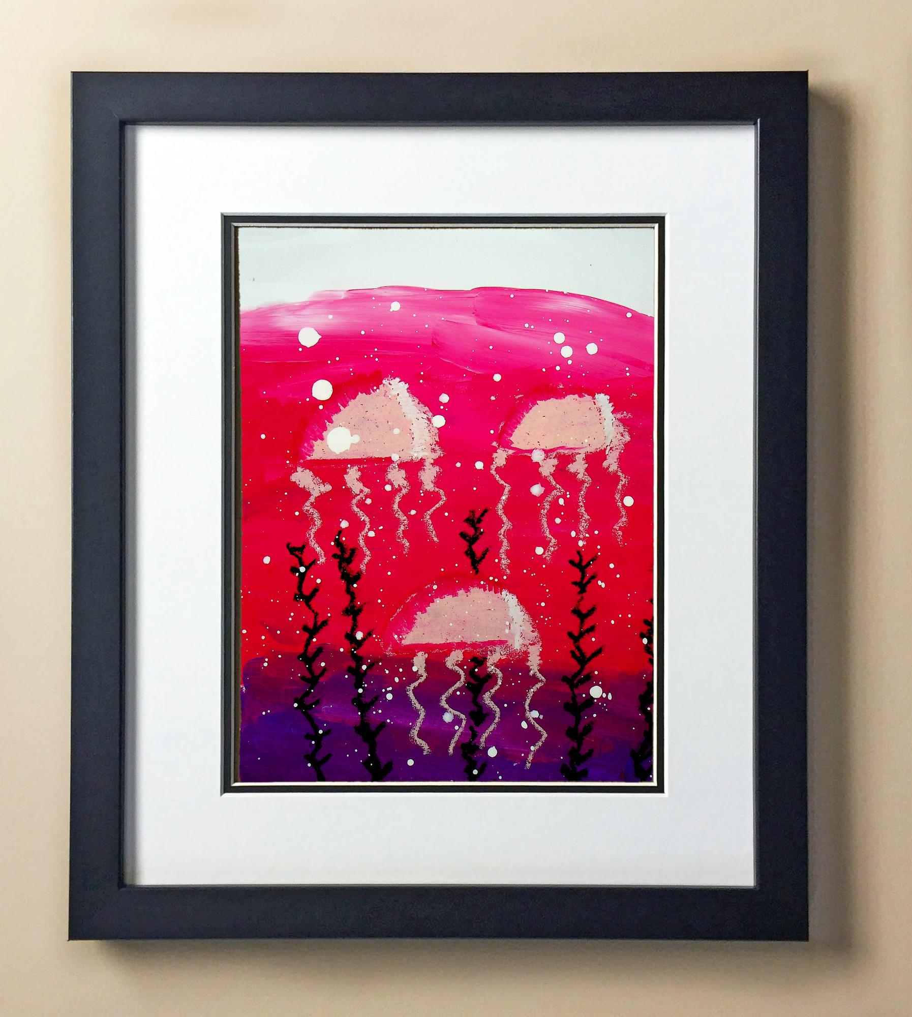 Included with the purchase is the Students Artwork, Frame, double matboard, shatter proof plexiglass, and a ready to hang backerboard with turnbuttons