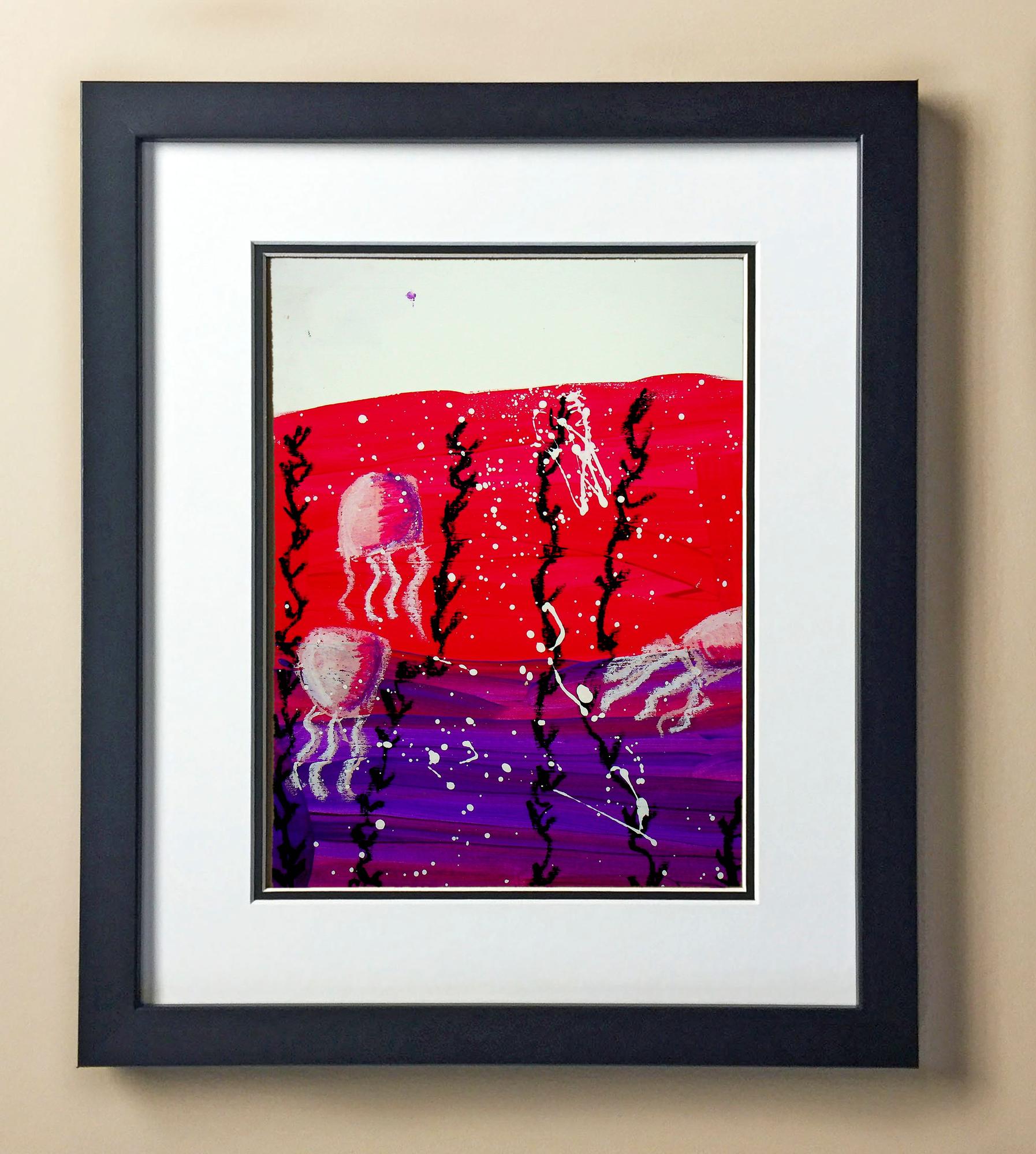 Included with the purchase is the Students Artwork, Frame, double matboard, shatter proof plexiglass, and a ready to hang backerboard with turnbuttons