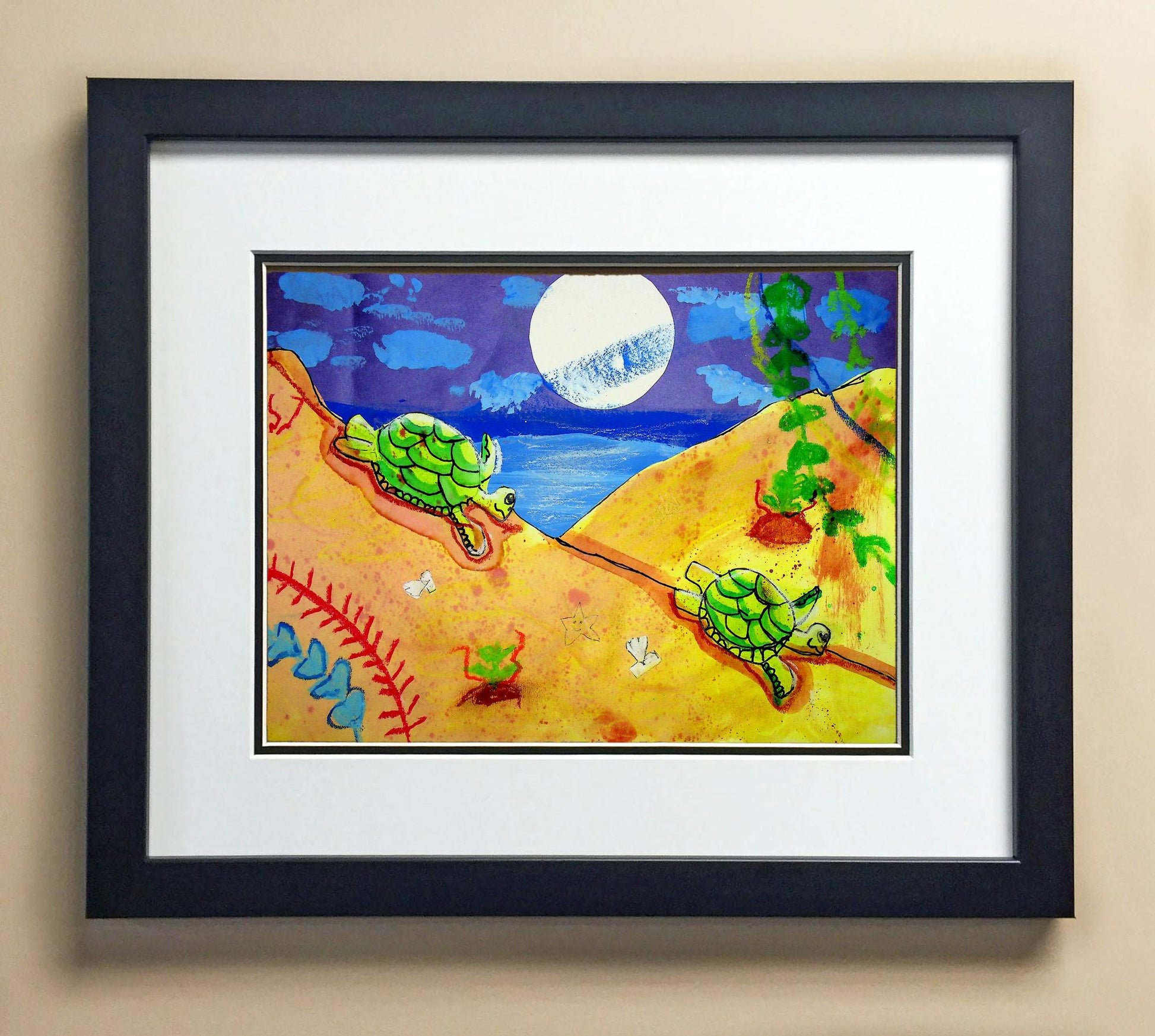 Included with the purchase is the Students Artwork, Frame, double matboard, shatter proof plexiglass, and a ready to hang backerboard with turnbuttons