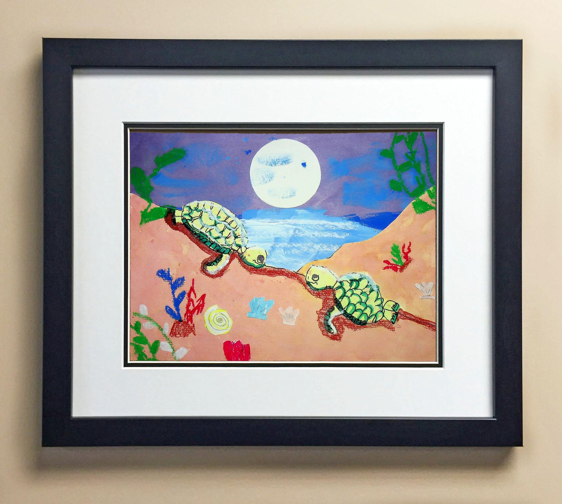 Included with the purchase is the Students Artwork, Frame, double matboard, shatter proof plexiglass, and a ready to hang backerboard with turnbuttons