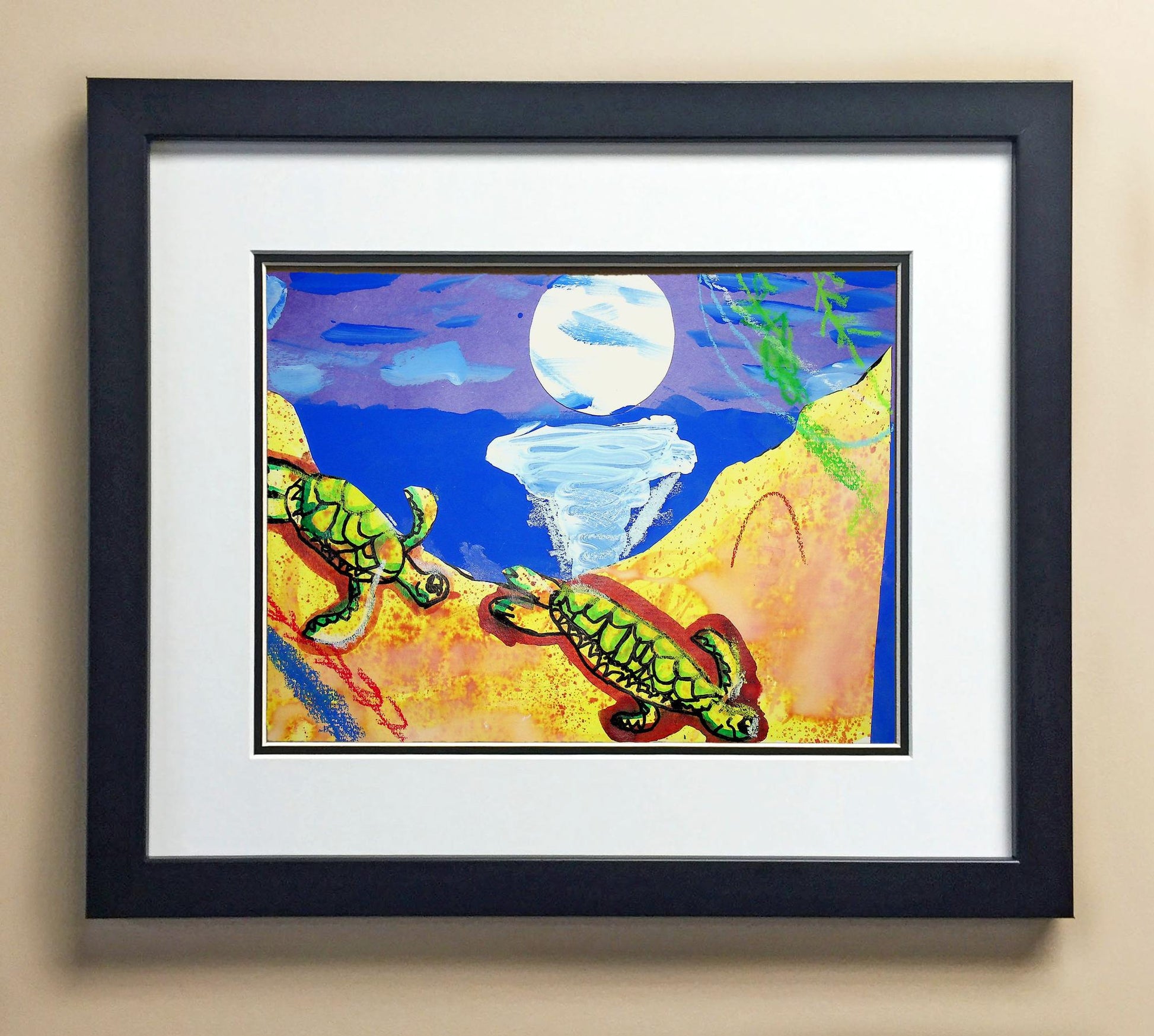 Included with the purchase is the Students Artwork, Frame, double matboard, shatter proof plexiglass, and a ready to hang backerboard with turnbuttons
