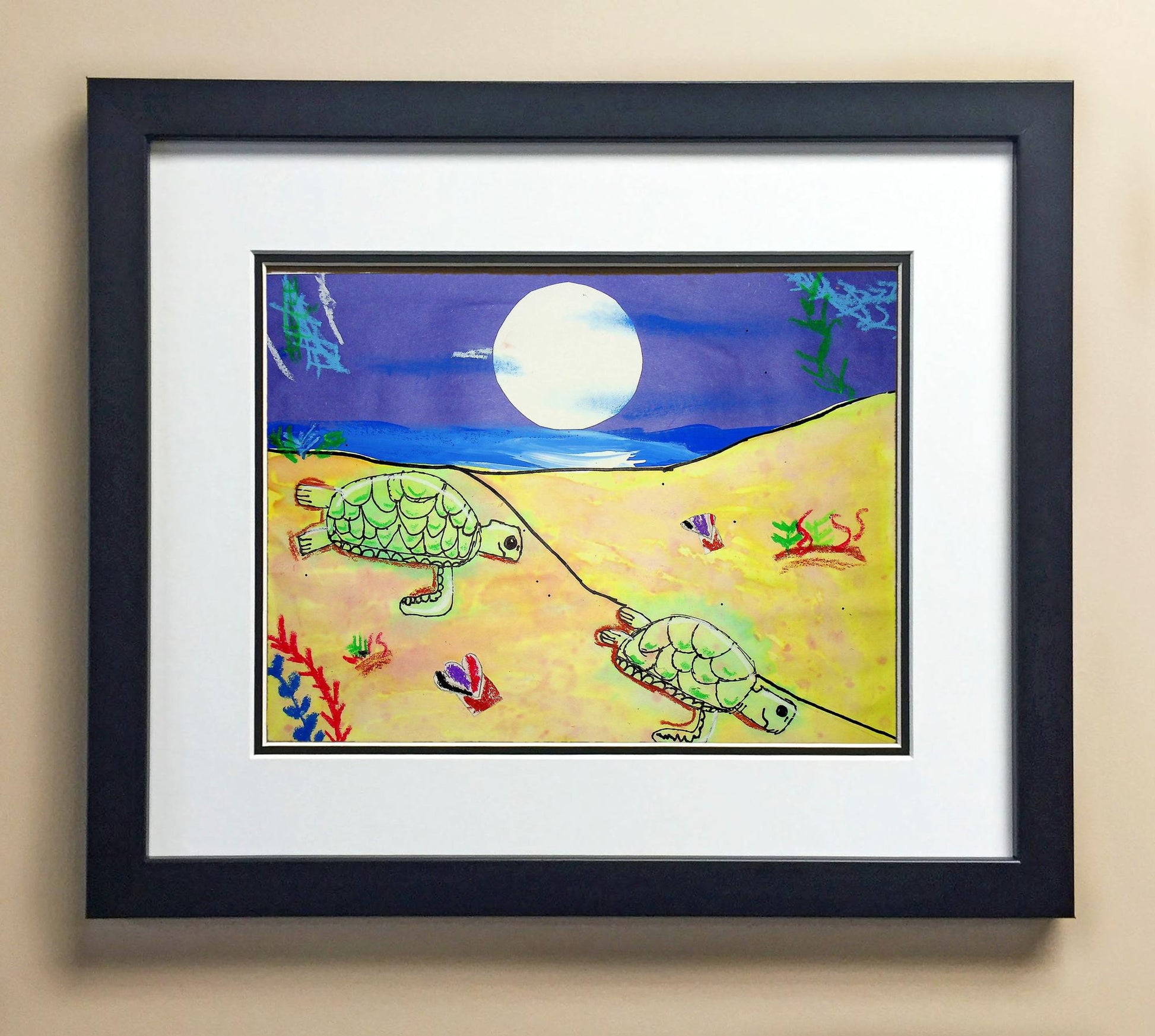 Included with the purchase is the Students Artwork, Frame, double matboard, shatter proof plexiglass, and a ready to hang backerboard with turnbuttons