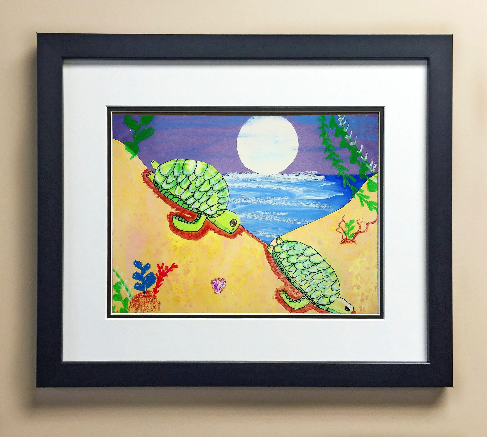Included with the purchase is the Students Artwork, Frame, double matboard, shatter proof plexiglass, and a ready to hang backerboard with turnbuttons