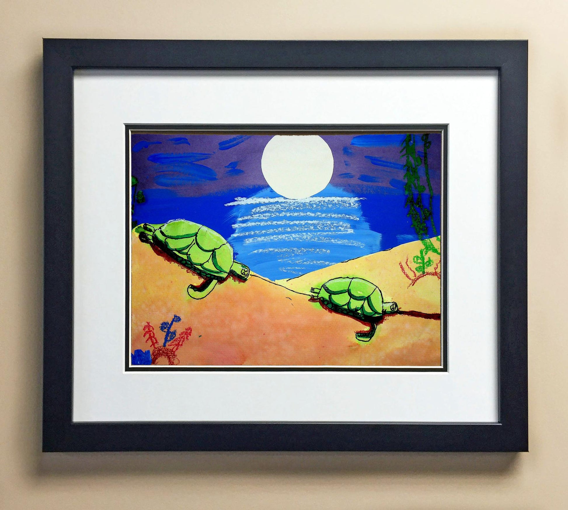Included with the purchase is the Students Artwork, Frame, double matboard, shatter proof plexiglass, and a ready to hang backerboard with turnbuttons