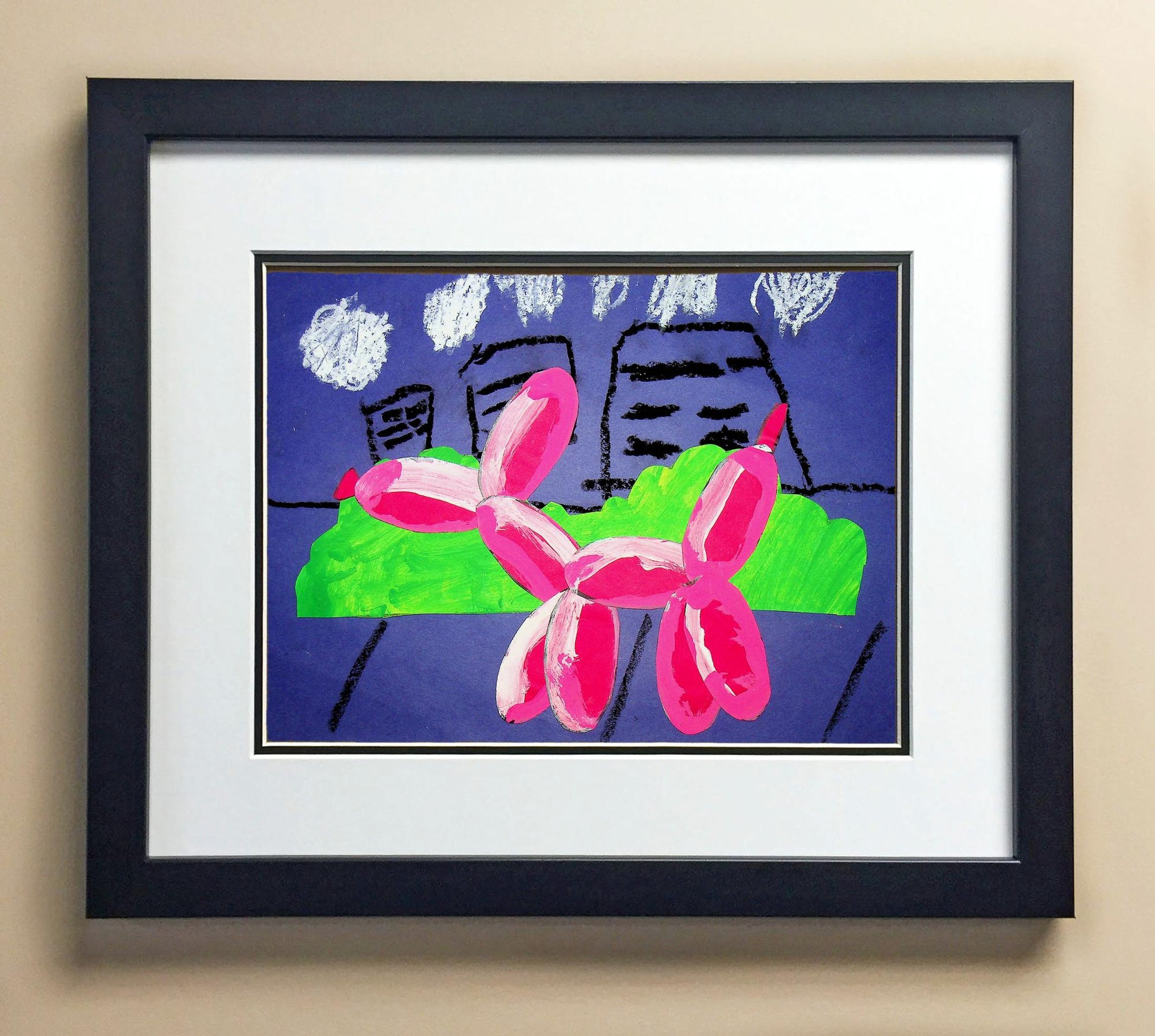 Included with the purchase is the Students Artwork, Frame, double matboard, shatter proof plexiglass, and a ready to hang backerboard with turnbuttons