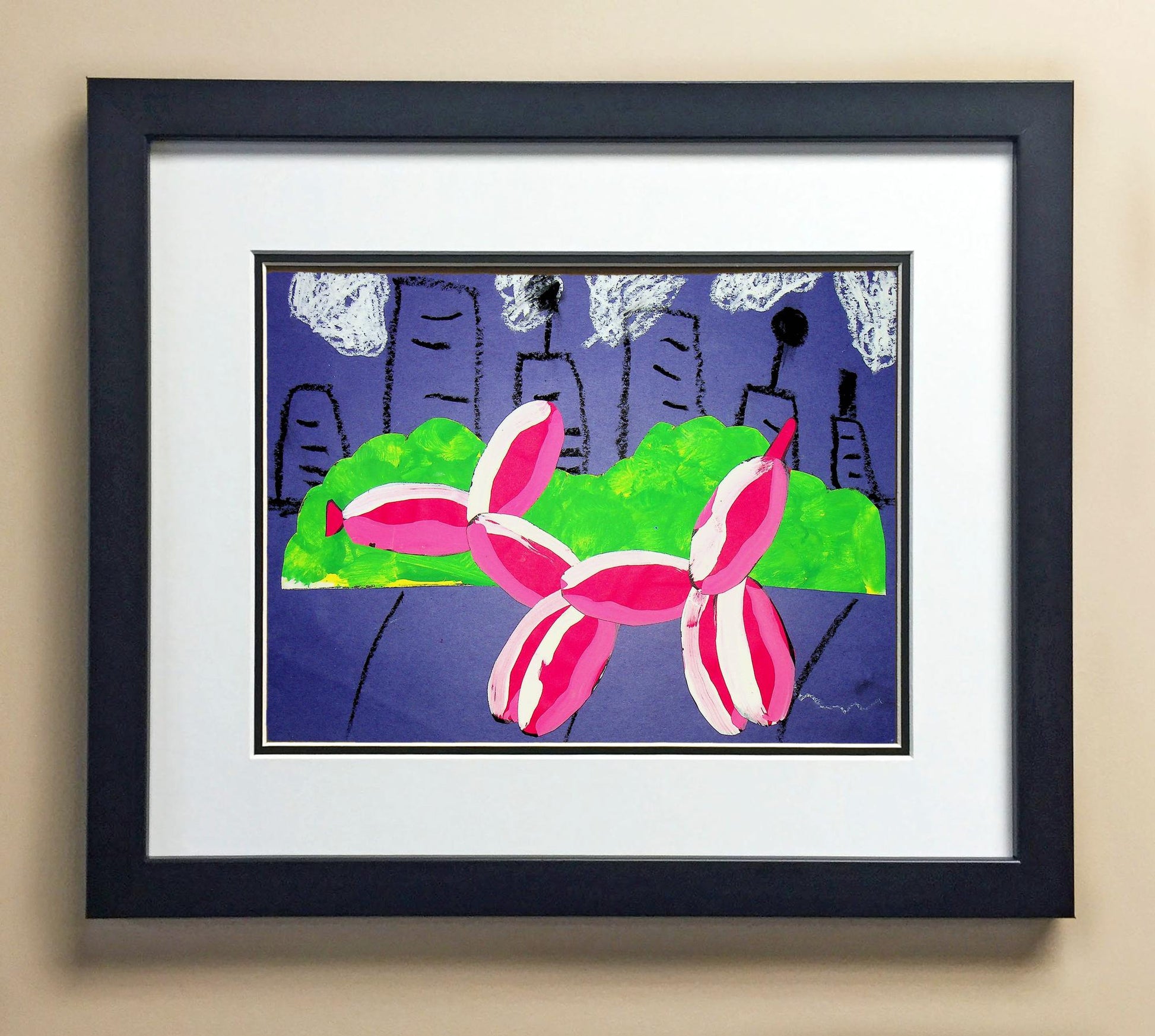 Included with the purchase is the Students Artwork, Frame, double matboard, shatter proof plexiglass, and a ready to hang backerboard with turnbuttons