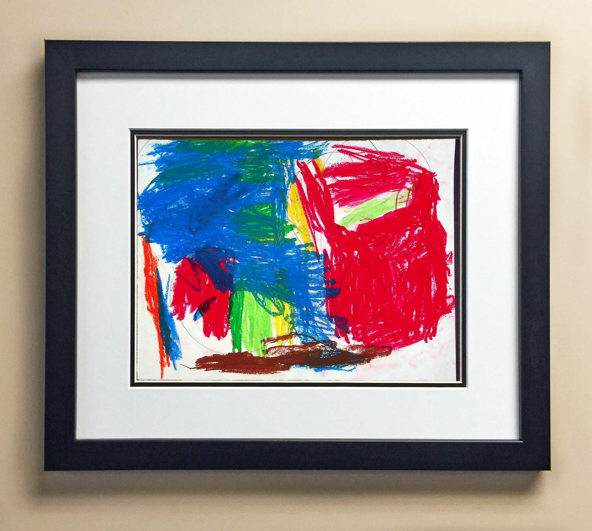 Included with the purchase is the Students Artwork, Frame, double matboard, shatter proof plexiglass, and a ready to hang backerboard with turnbuttons