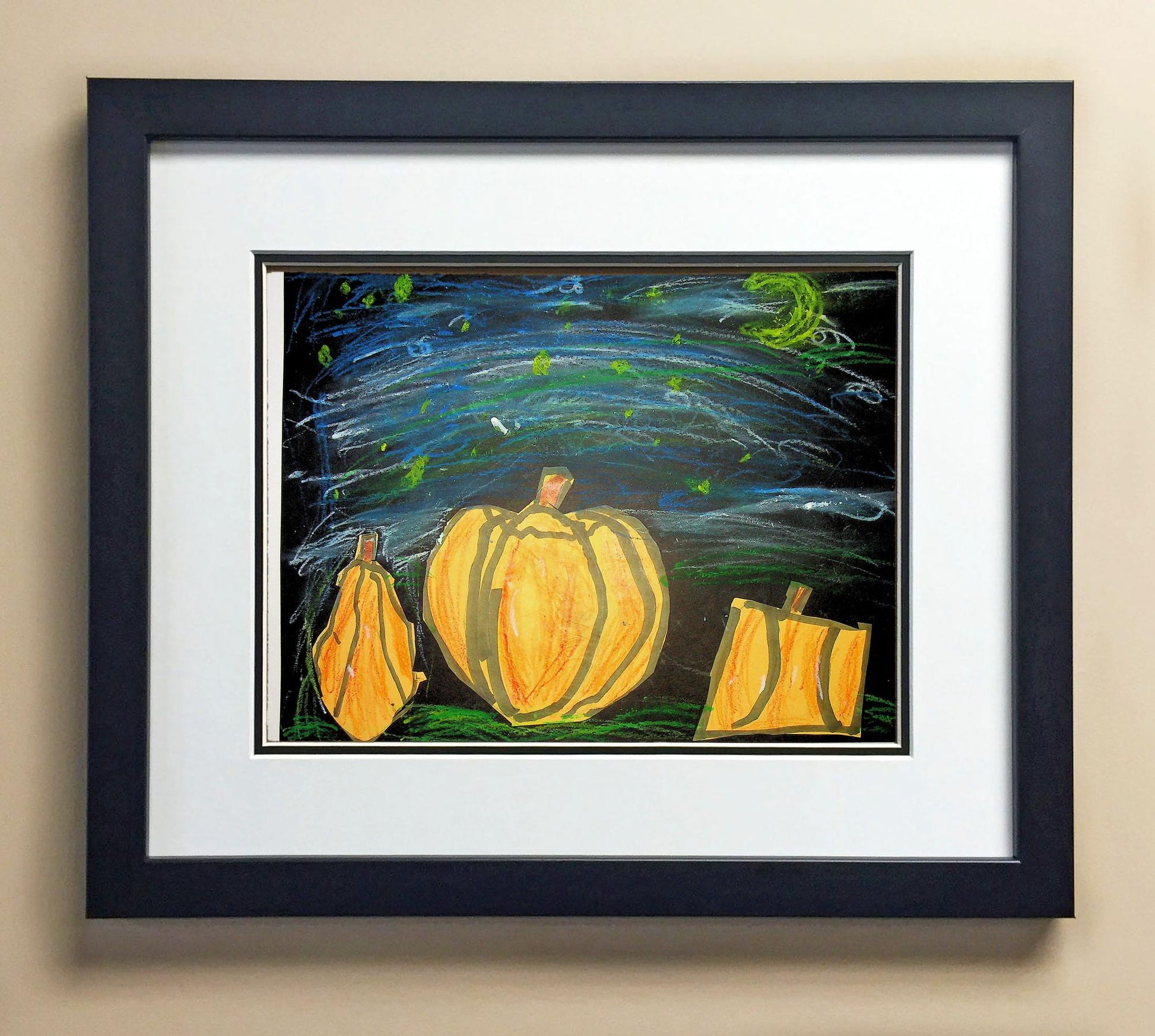 Included with the purchase is the Students Artwork, Frame, double matboard, shatter proof plexiglass, and a ready to hang backerboard with turnbuttons