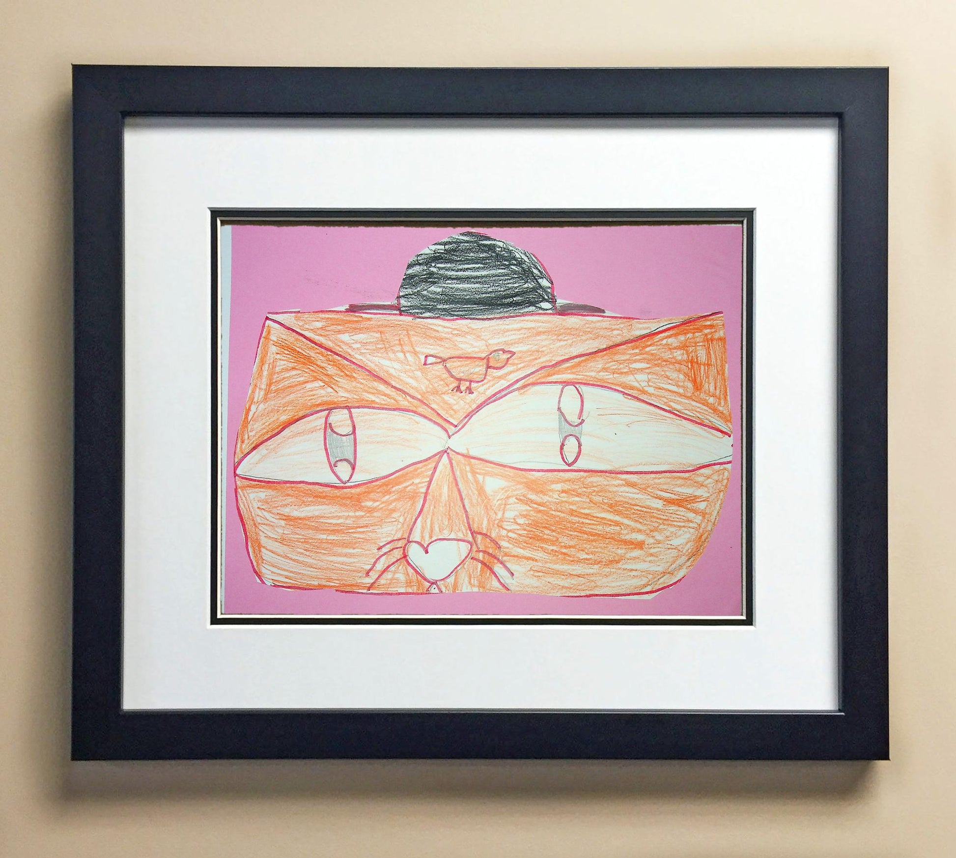 Included with the purchase is the Students Artwork, Frame, double matboard, shatter proof plexiglass, and a ready to hang backerboard with turnbuttons