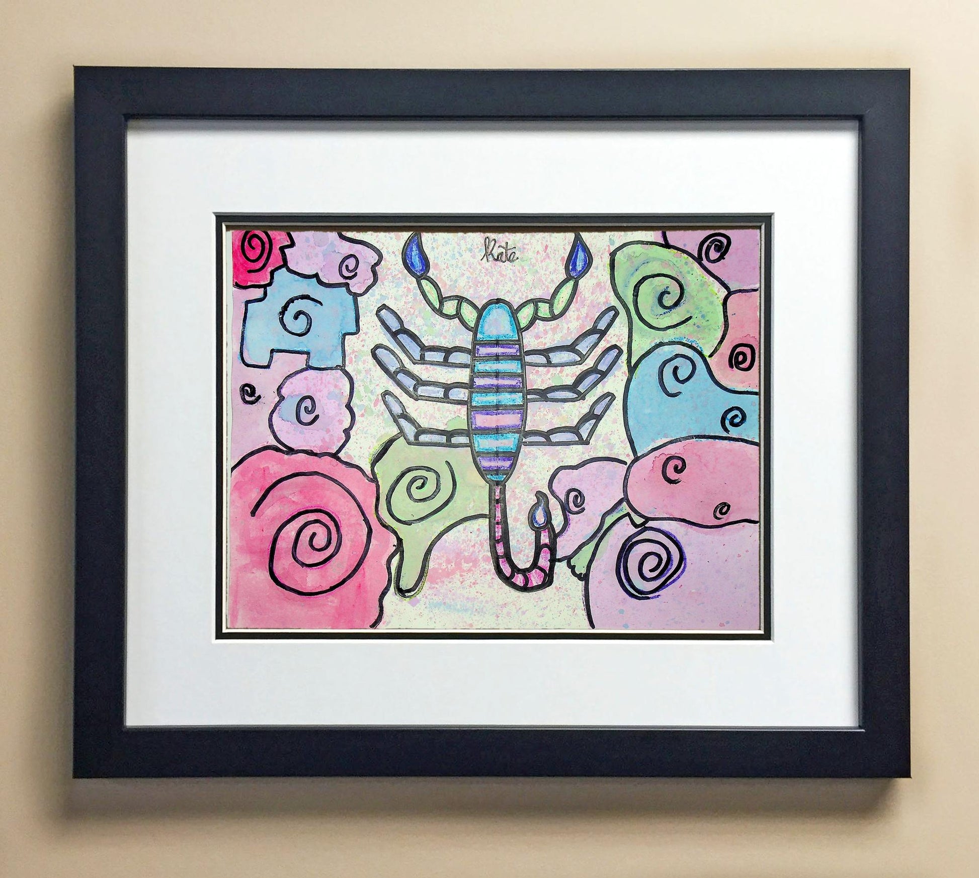 Included with the purchase is the Students Artwork, Frame, double matboard, shatter proof plexiglass, and a ready to hang backerboard with turnbuttons